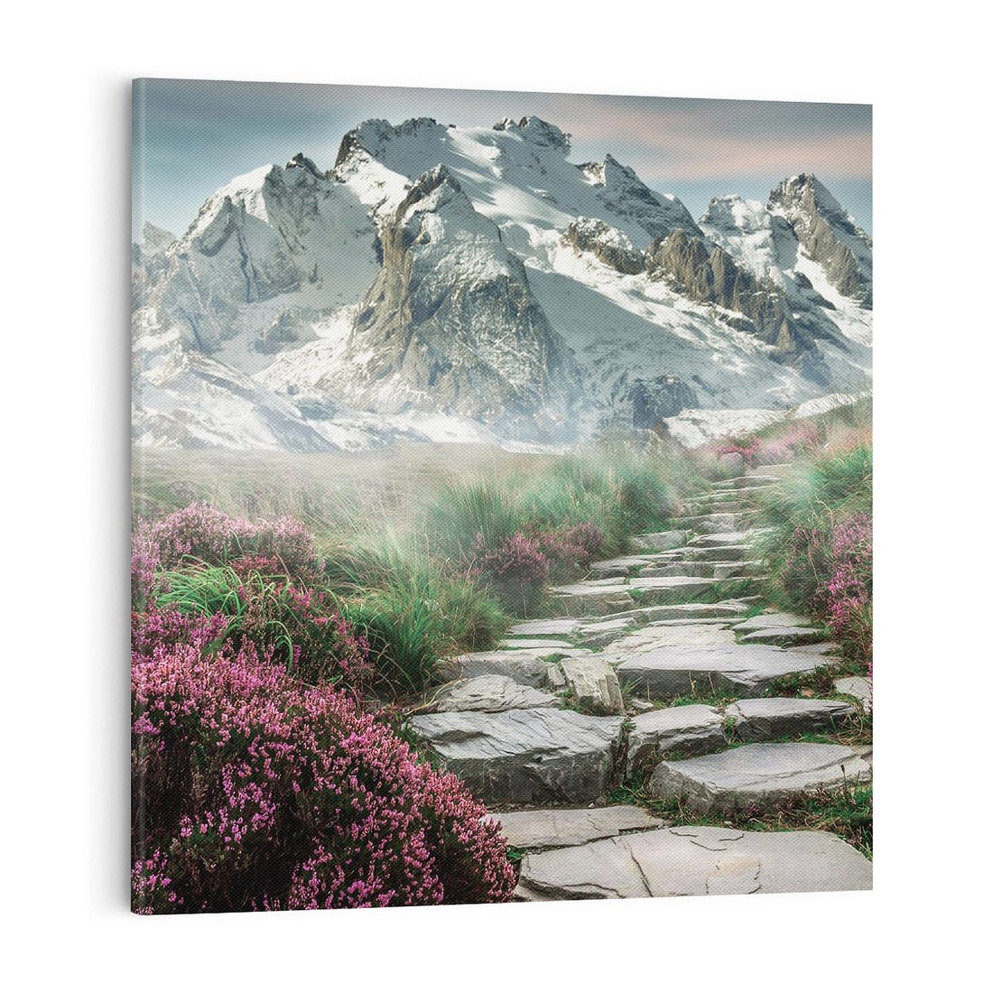 - Obraz na płótnie 60x60 - Góry, Ścieżka, Kwiaty - Spacer wśród Przyrody
