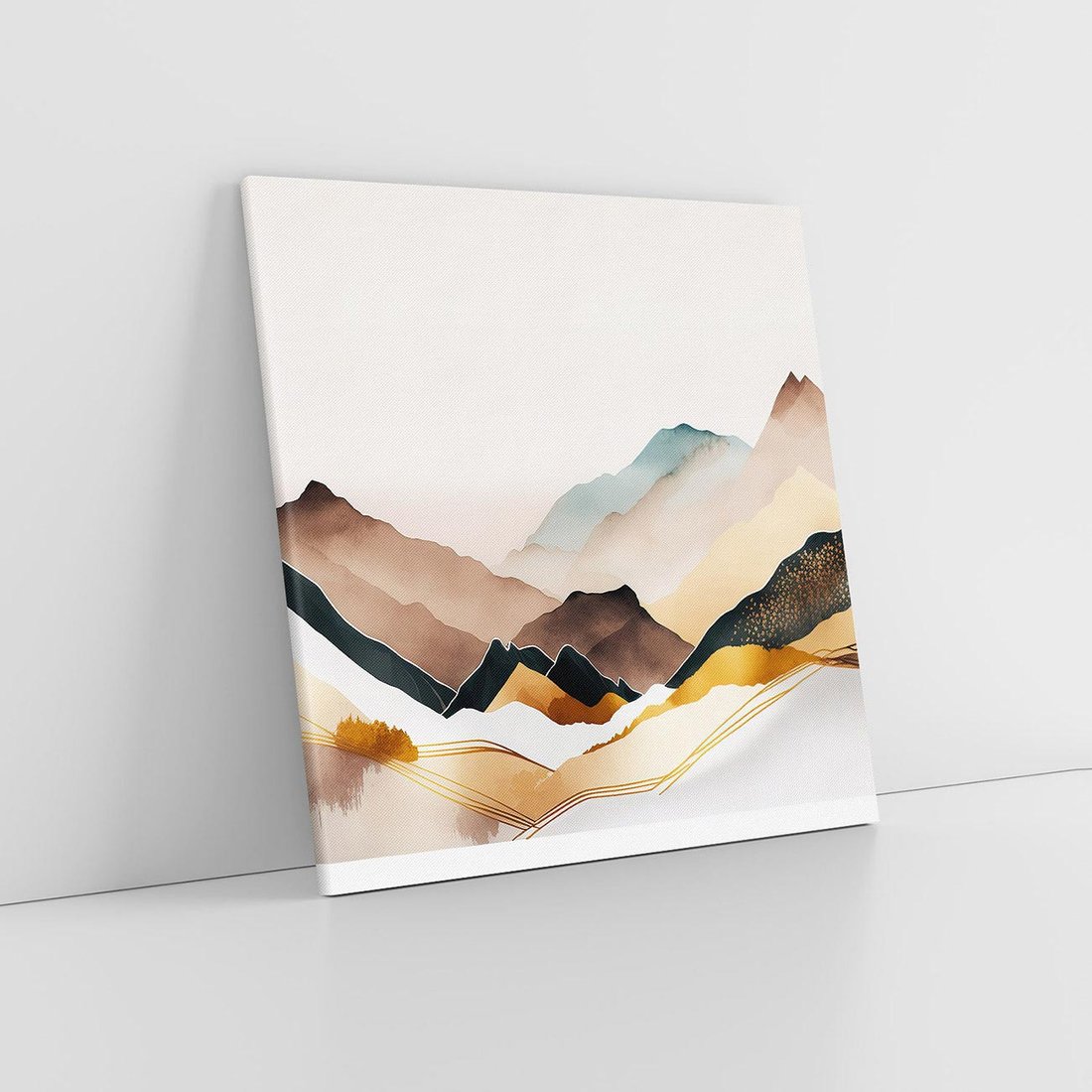 Obraz na płótnie 60x60 - Góry Tonące w Pastelach - złote pastelowe góry, akwarela