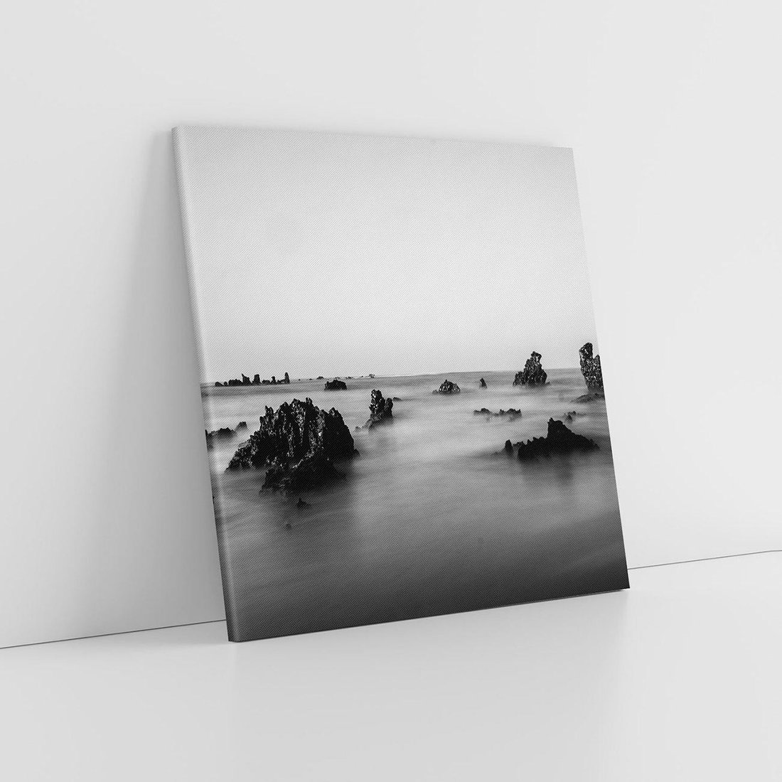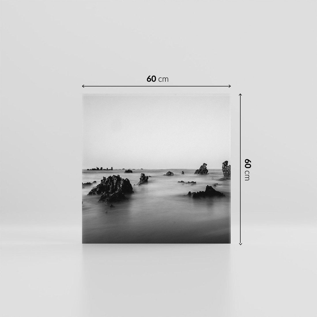 Obraz na płótnie 60x60 - Harmonia świateł i cieni - zamglona dzika plaża, skały na plaży