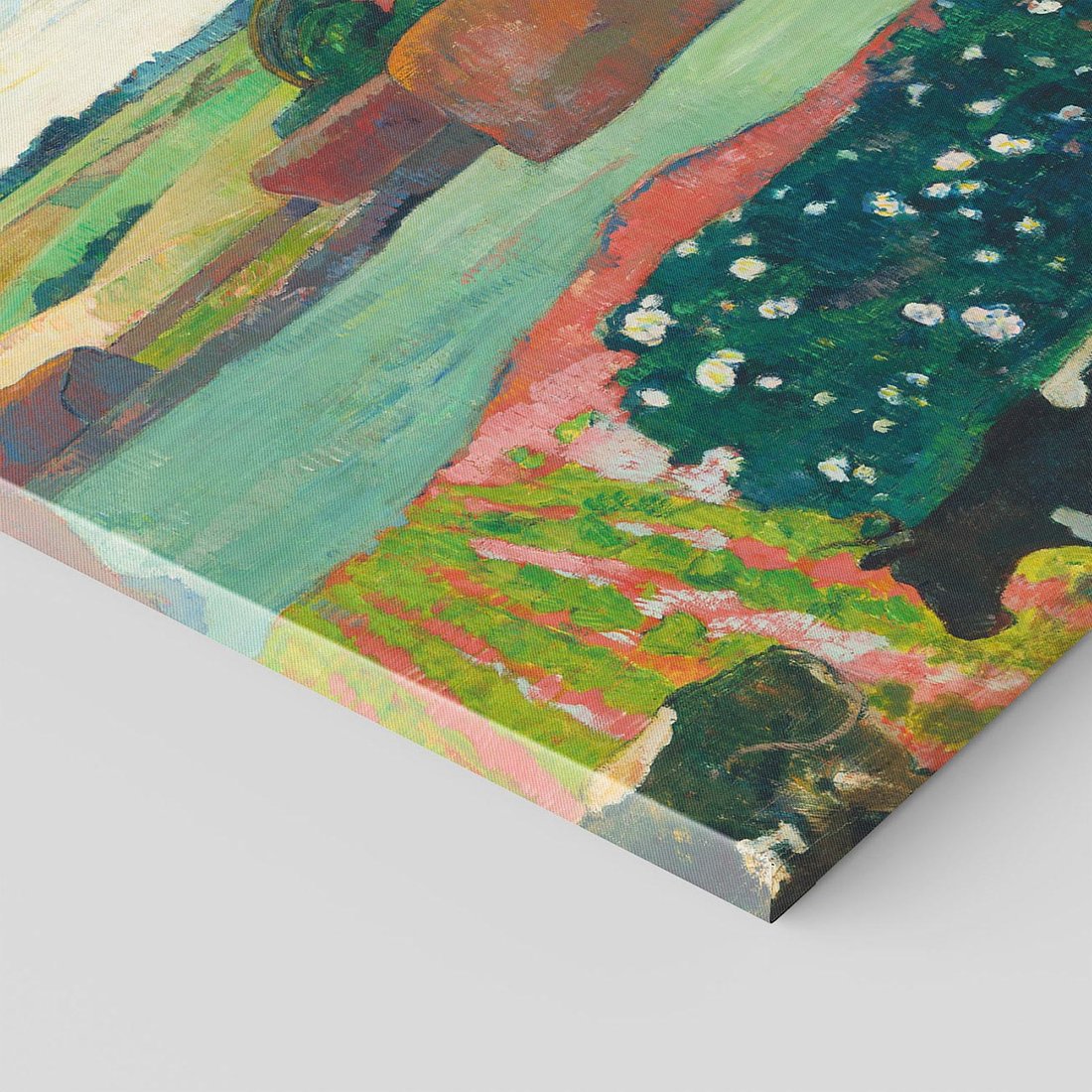 Obraz "Haystacks in Brittany" Paula Gauguina z 1890 roku to impresjonistyczna kompozycja przedstawiająca wiejskie krajobrazy w Bretanii. Artysta ukazuje stosy siana na tle przyrody i charakterystycznych dla regionu zabudowań. Gauguin używa pastelowych kolorów i świeżego pociągnięcia pędzla, aby oddać urok wiejskiego życia i krajobrazu.