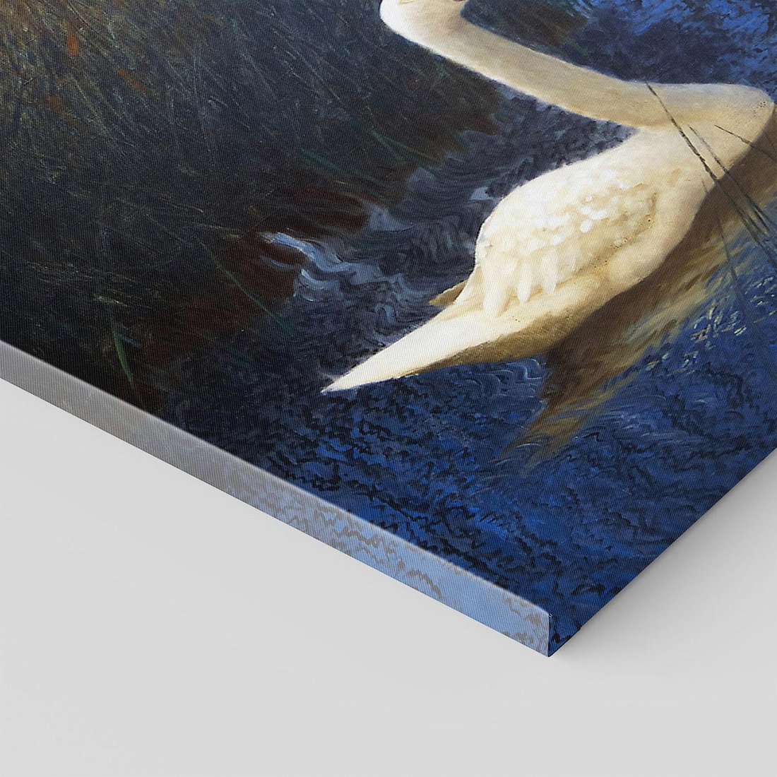 "Łabędzie w trzcinach" (1907) Bruno Liljeforsa to realistyczny pejzaż przedstawiający łabędzie w naturalnym środowisku. Artysta mistrzowsko uchwycił szczegóły i teksturę zarówno ptaków, jak i roślinności. To dzieło oddaje harmonię i piękno natury.