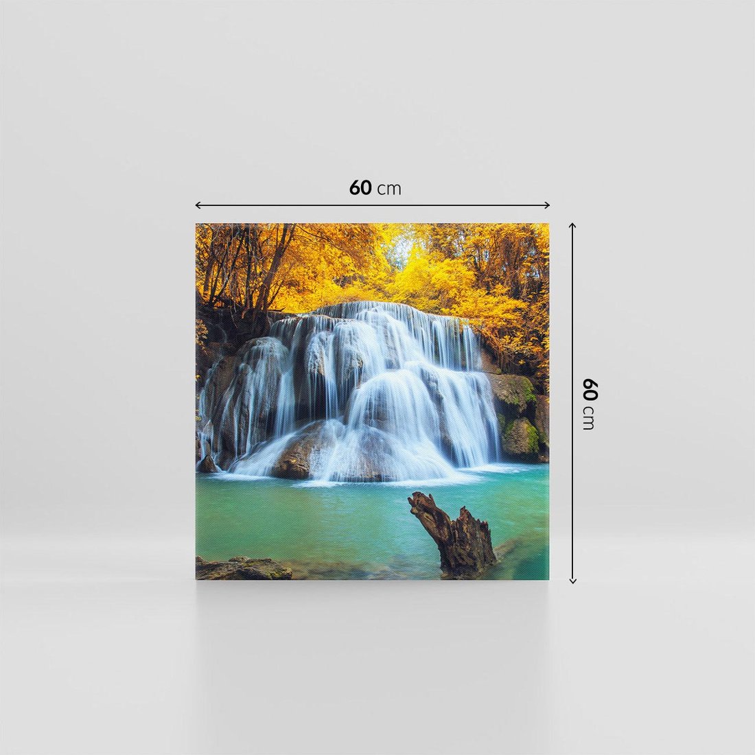 Odkryj magię kolorów jesieni dzięki temu malowniczemu obrazowi przedstawiającemu las i wodospad. Złote liście, spokojna woda i malownicze drzewa tworzą magiczną atmosferę. Ta kompozycja dodaje ciepła i nostalgii, idealna dla miłośników jesiennych krajobrazów i pejzażu natury.
