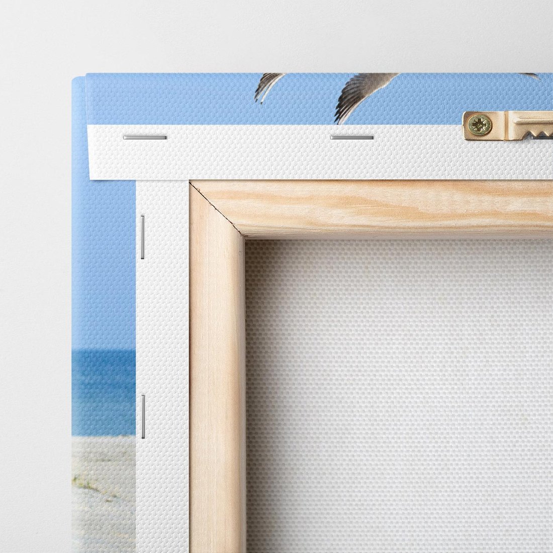 Ten ujmujący obraz na płótnie przeniesie Cię na plażę, gdzie mewy krążą nad morskim brzegiem. Jego delikatne kolory, ruch ptaków i widok na morze dodają spokoju i harmonii do Twojego wnętrza. Odczuj przyjemność i wolność natury w swoim domu.