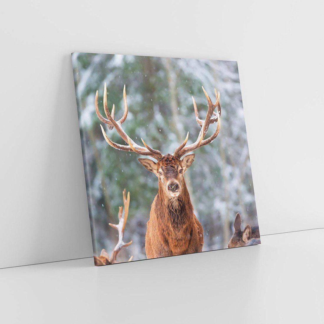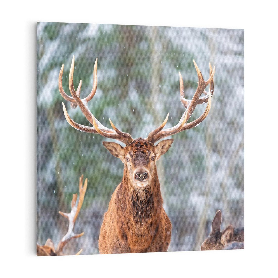 Obraz na płótnie 60x60 - Monarcha Zimowej Dziczy - jeleń, zima