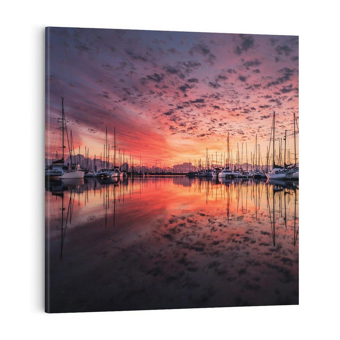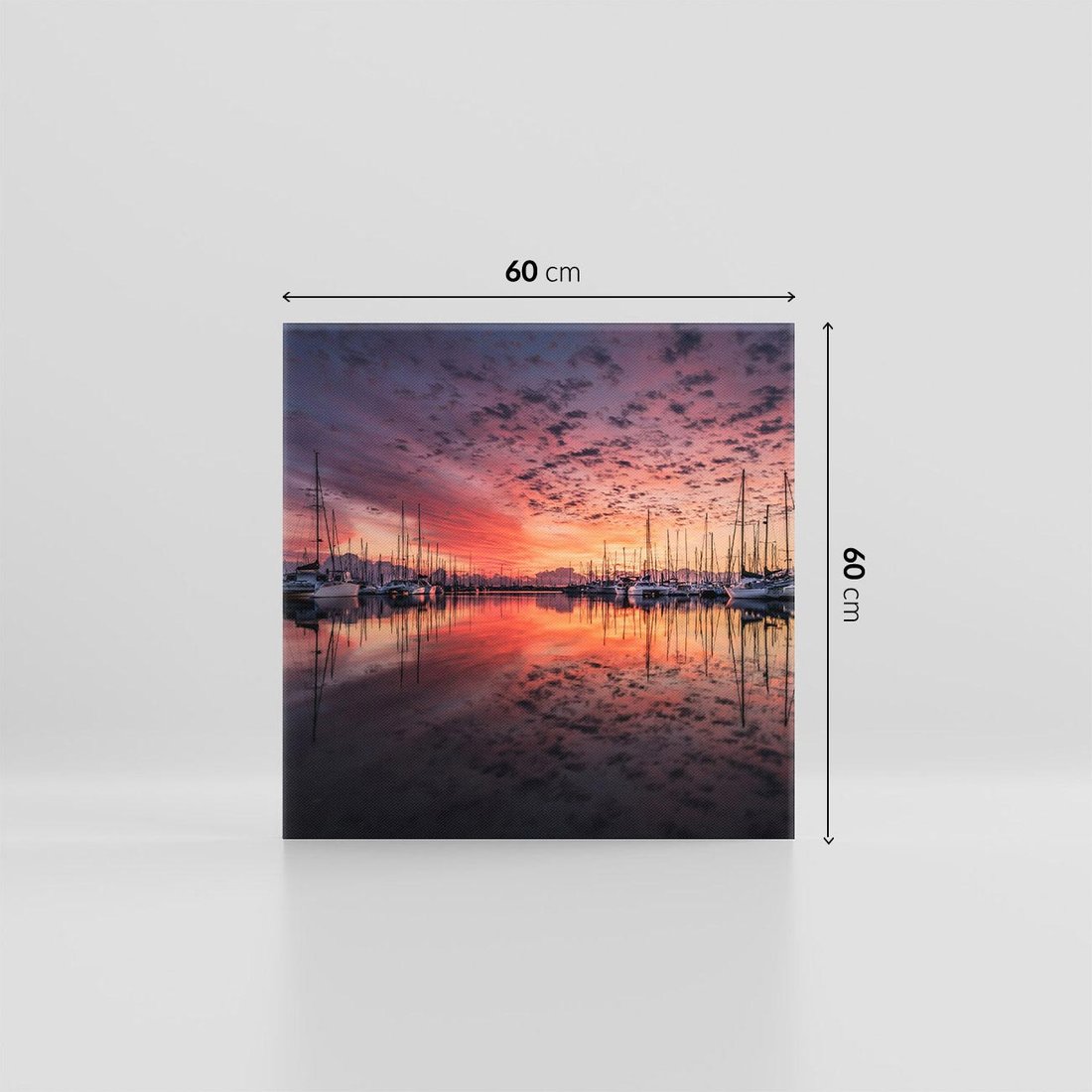 Ten ujmujący obraz przeniesie Cię w magiczny moment zachodu słońca w marinie, gdzie łodzie unoszą się na falach. Ciesz się widokiem odbijającego się światła i atmosfery wieczornego spokoju. Dodaj nutę nadmorskiego uroku i relaksu swojemu wnętrzu tym wyjątkowym dziełem sztuki.