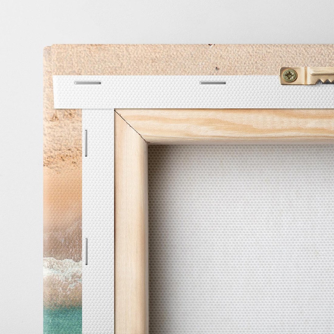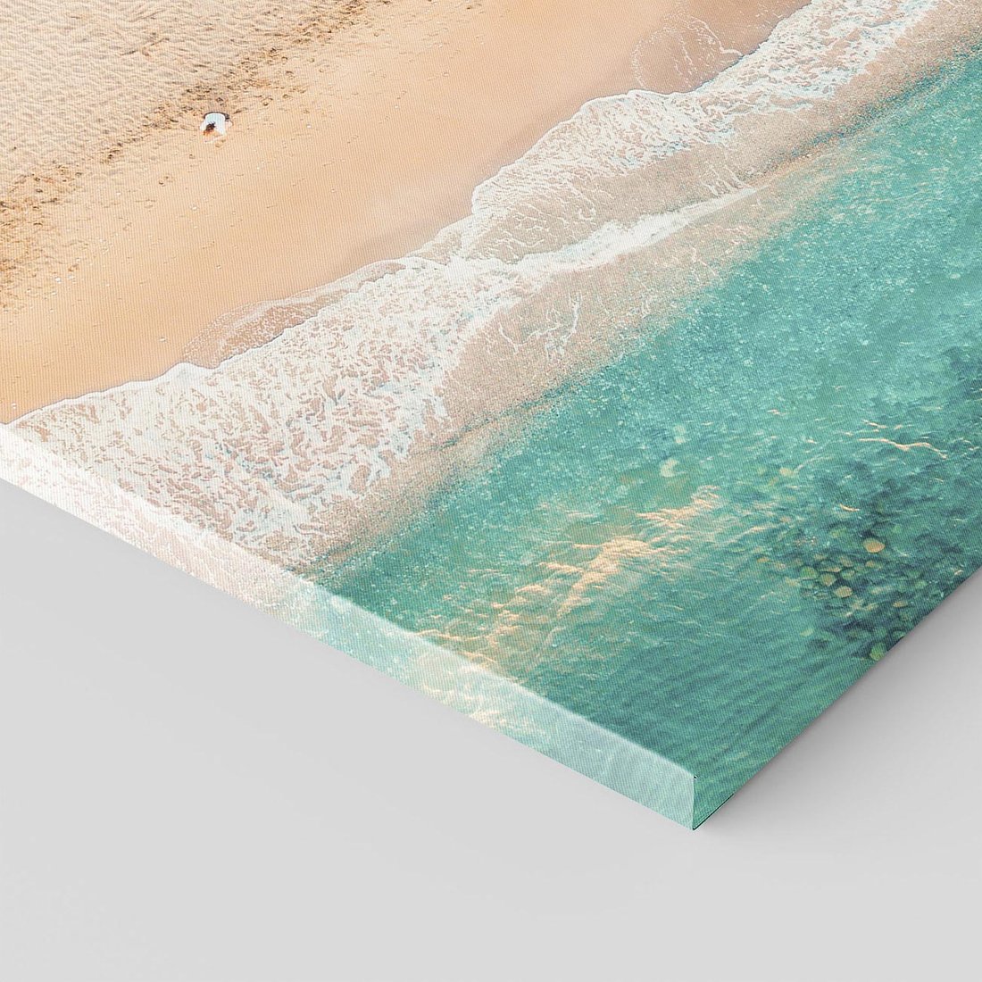 Przenieś się do magicznej krainy dzięki tej urzekającej fotografii. Widok z lotu ptaka ukazuje symetryczny pejzaż plaży i morza, tworząc niezwykły harmonijny obraz. To dzieło sztuki stworzone dla miłośników naturalnej piękności i spokoju. Doskonały akcent dla tych, którzy pragną wprowadzić do swojego wnętrza harmonię.