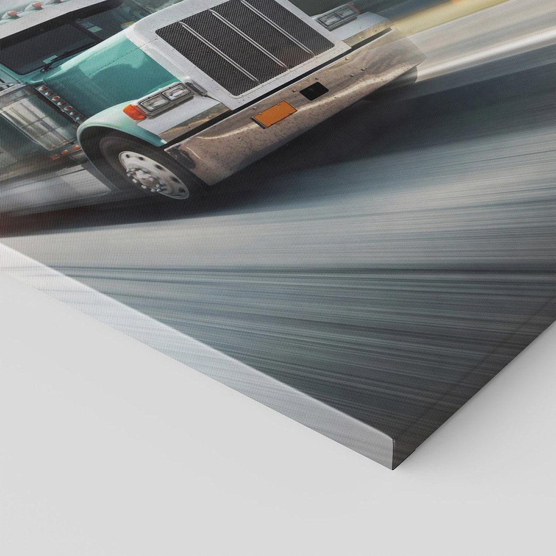 Dynamiczny obraz na płótnie przedstawiający ciężarówkę w amerykańskim stylu, pędzącą przez pustkowia zachodnich Stanów Zjednoczonych. Wiatr w włosach, wolność na horyzoncie - ta kompozycja przynosi dawkę energii i przygody. Doskonały wybór dla fanów motoryzacji i amerykańskiego stylu życia.