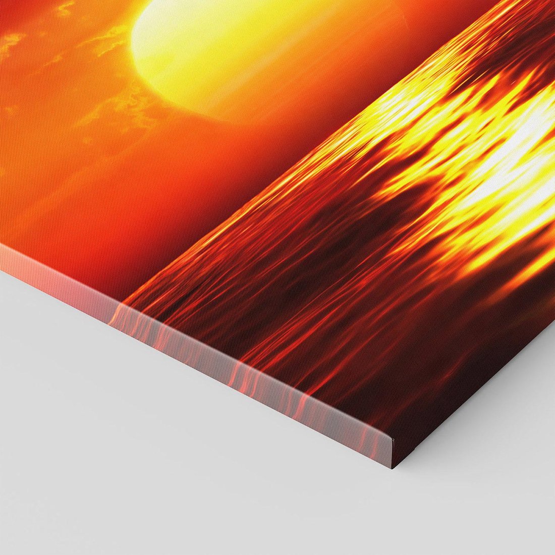 Przenieś się w romantyczną atmosferę dzięki temu uroczemu obrazowi przedstawiającemu zachód słońca nad morzem. Ciepłe odcienie, złociste promienie i spokojna fala tworzą magiczną scenerię. Ta kompozycja dodaje relaksu i uroku, idealna dla osób pragnących przenieść się w błogie chwile zachodu słońca nad malowniczym morzem.