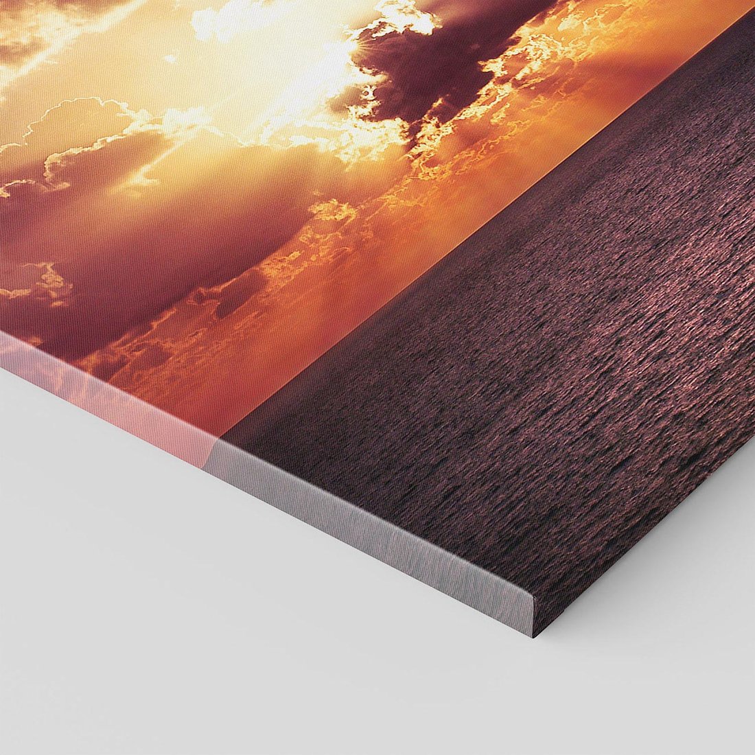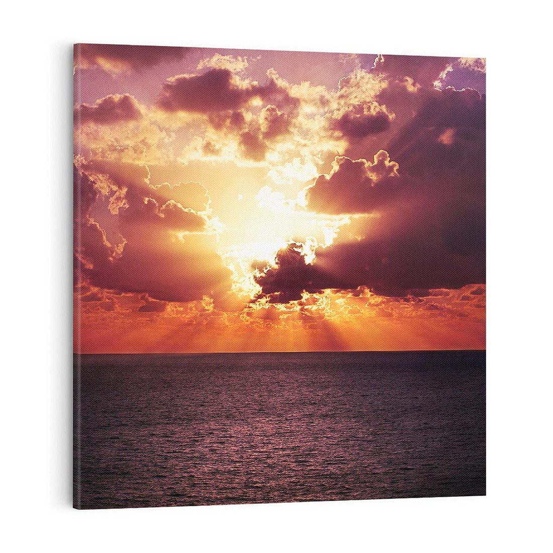 Ten uroczy obraz przeniesie Cię w momenty pięknych zachodów słońca nad morzem, gdzie słońce przebija się przez chmurki. Ciesz się widokiem ich kontrastu i dodaj odrobinę magii natury do swojego wnętrza tym wyjątkowym obrazem.