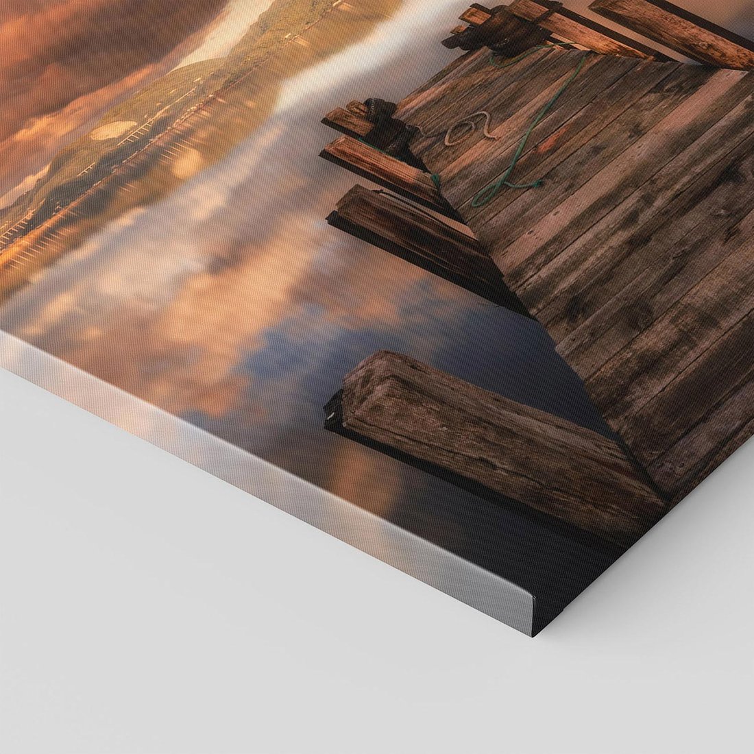 Przenieś się nad spokojne jezioro dzięki temu uroczemu obrazowi. Drewniane molo, odbicie w wodzie i malownicze krajobrazy tworzą nastrojową atmosferę. Ten obraz dodaje spokoju i relaksu, idealny dla osób pragnących cieszyć się pięknem natury i chwilą oderwania od codzienności.