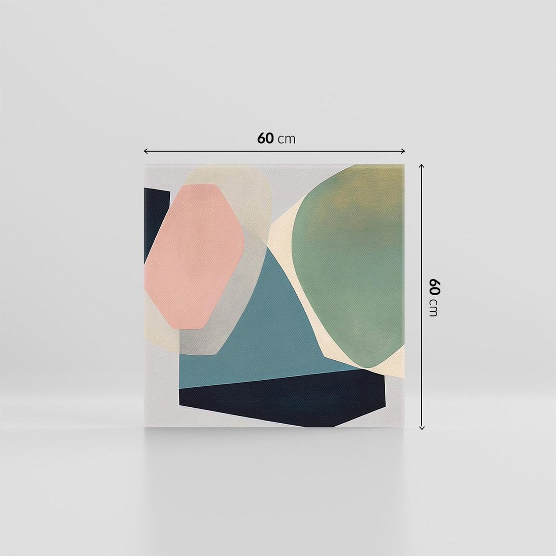 To dzieło przedstawia abstrakcyjne plamy i kształty o pastelowych kolorach, które kontrastują z delikatnym szarym tłem. To odsłonięcie wyobraźni, gdzie formy i kolory tworzą subtelną opowieść na płótnie. To zaproszenie do kontemplacji nad harmonią i zróżnicowaniem abstrakcyjnych elementów, które wprowadzają nas w świat refleksji i interpretacji.
