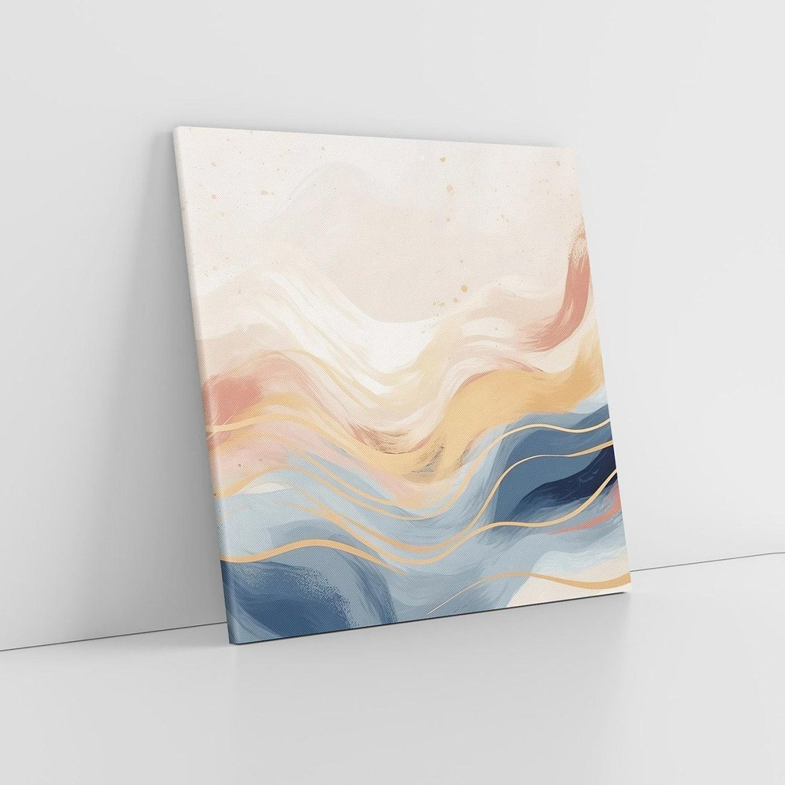 Odkryj elegancję w subtelnych abstrakcyjnych falach na płótnie. Gładkie linie tworzą klasyczne kształty, a delikatne pastelowe kolory dodają przyjemnej atmosfery, idealnej do ozdobienia Twojego domu.