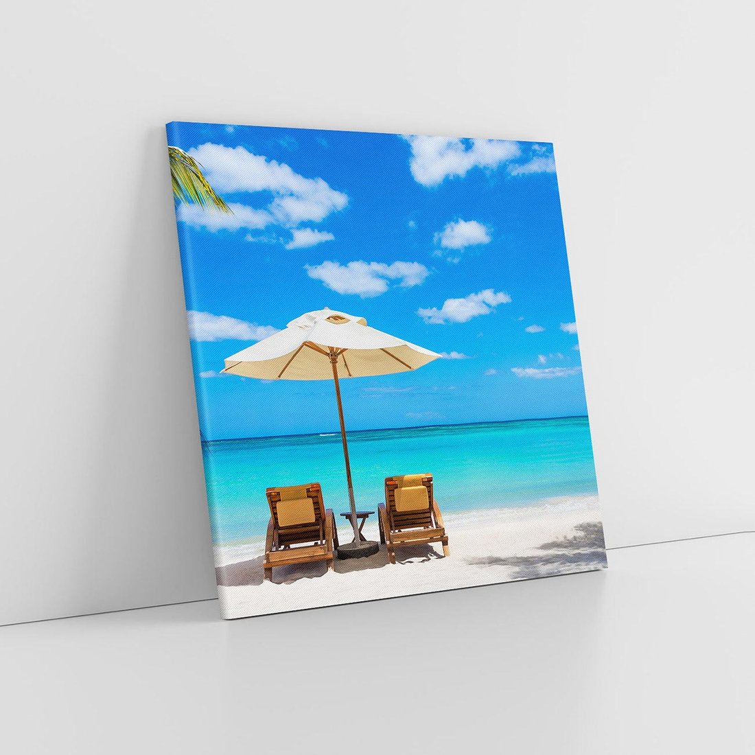 Przenieś się na egzotyczną plażę dzięki temu ujmującemu obrazowi na płótnie. Palma i kolorowe parasole nadają tropikalny klimat, a piasek i turkusowa woda dodają spokoju i świeżości. Dodaj odrobinę raju do swojego wnętrza.