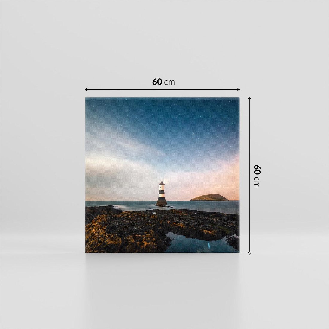 Obraz na płótnie 60x60 - Zachód słońca nad morzem: Magia plażowej scenerii - latarnia morska, morze