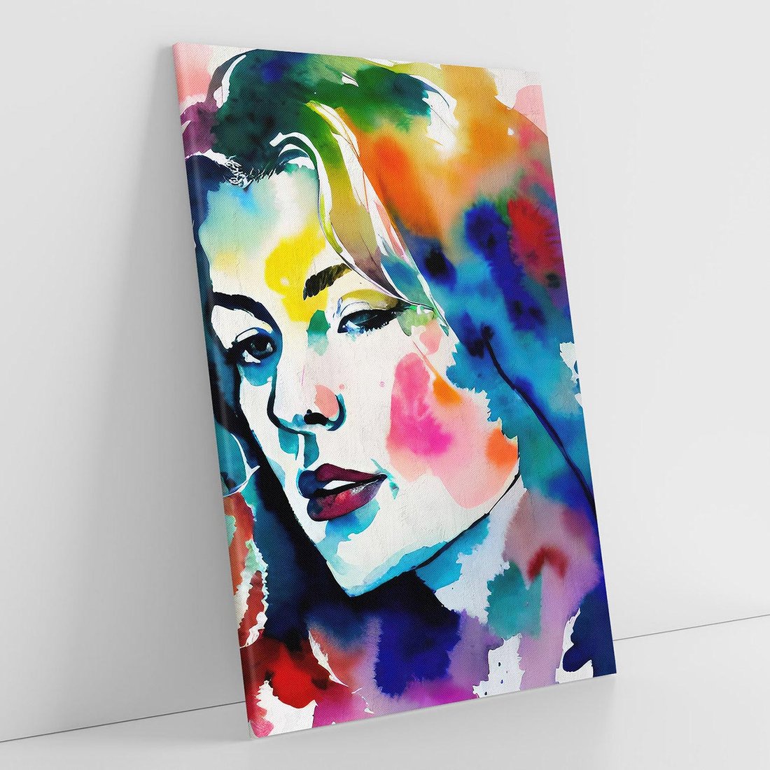 Czarna kreska w abstrakcyjnym portrecie kobiety jest delikatną osią, która kontrastuje z ekspresyjnymi akwarelowymi plamami rozpryśniętymi na płótnie. To zmysłowe połączenie wydobywa osobowość i emocje postaci , tworząc fascynujący taniec formy i koloru.