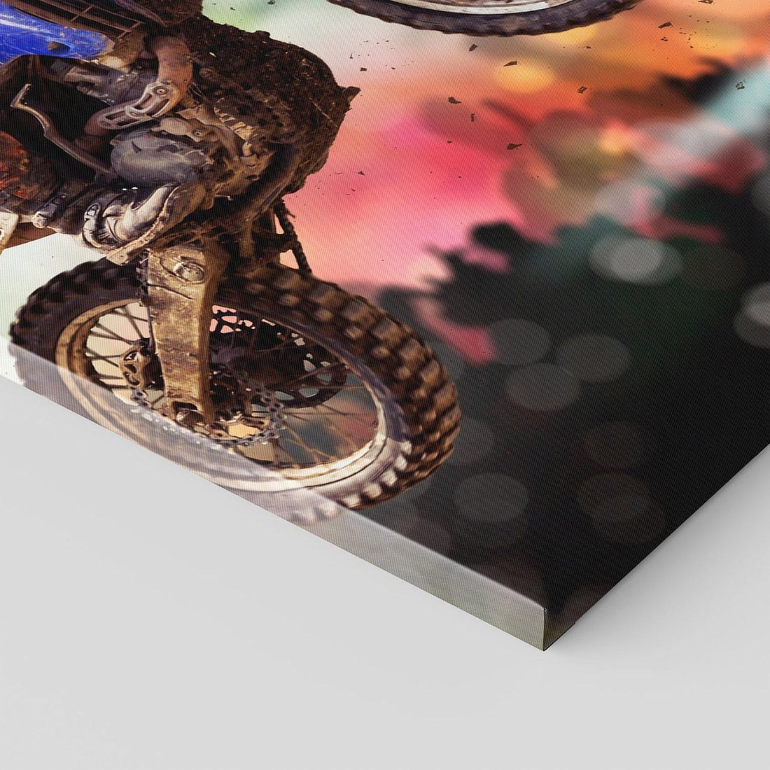 Poczuj dreszczyk emocji i wolność dzięki temu dynamicznemu obrazowi przedstawiającemu motocykl cross w akcji. Szybkość, ruch i intensywność oddają ducha przygody. Ta kompozycja dodaje energii i pasji każdemu pomieszczeniu, idealna dla miłośników sportów ekstremalnych i szybkości.