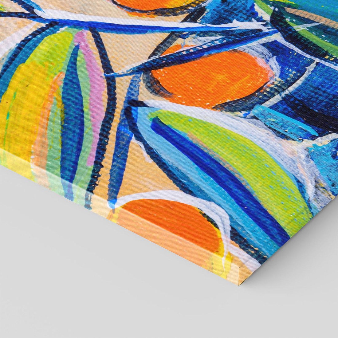 Energiczne mandarynki i pomarańcze za sprawą artystycznego pędzla łączą się na płótnie, dodając Twojej kuchni nowoczesnego i energetycznego akcentu. Sztuka gotowa, by zainspirować Twój dom.