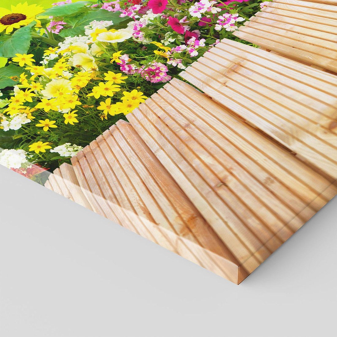 Przywołaj piękno kwiatowego ogrodu dzięki temu urzekającemu obrazowi przedstawiającemu kolorową harmonię kwiatów. Soczyste kolory, różnorodność kwiatów i bujna roślinność tworzą niesamowity klimat. Ten obraz dodaje radości i energii, idealny dla miłośników kwiatów, natury i pełni życia.