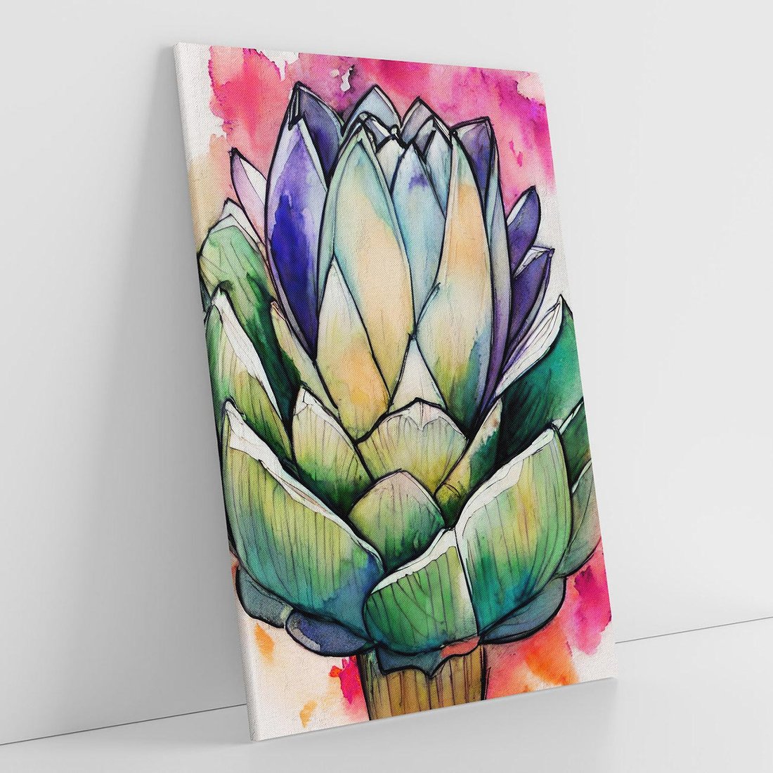Ten abstrakcyjny obraz w technice akwareli przedstawia karczoch w sposób niekonwencjonalny i artystyczny. Artysta wykorzystuje delikatne przejścia kolorów i swobodne linie, aby stworzyć abstrakcyjny obraz, który jednocześnie może być źródłem inspiracji i zagadką dla widza. Technika akwareli dodaje delikatności i subtelności temu dziełu, tworząc wrażenie lekkości i przejrzystości. To doskonała dekoracja dla tych, którzy cenią sobie abstrakcyjną sztukę i wyjątkową estetykę roślin.