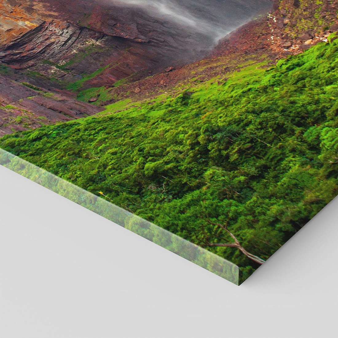 Ożyw swoje wnętrze tym uroczym obrazem przedstawiającym górskie wodospady. Ich potężny nurt, dynamiczne spadające kaskady i otaczająca przyroda tworzą dynamiczną kompozycję. Ten obraz dodaje odczucia siły natury, świeżości i ekscytacji, idealny dla miłośników górskich krajobrazów i osób pragnących wprowadzić do swojego domu atmosferę przygody.