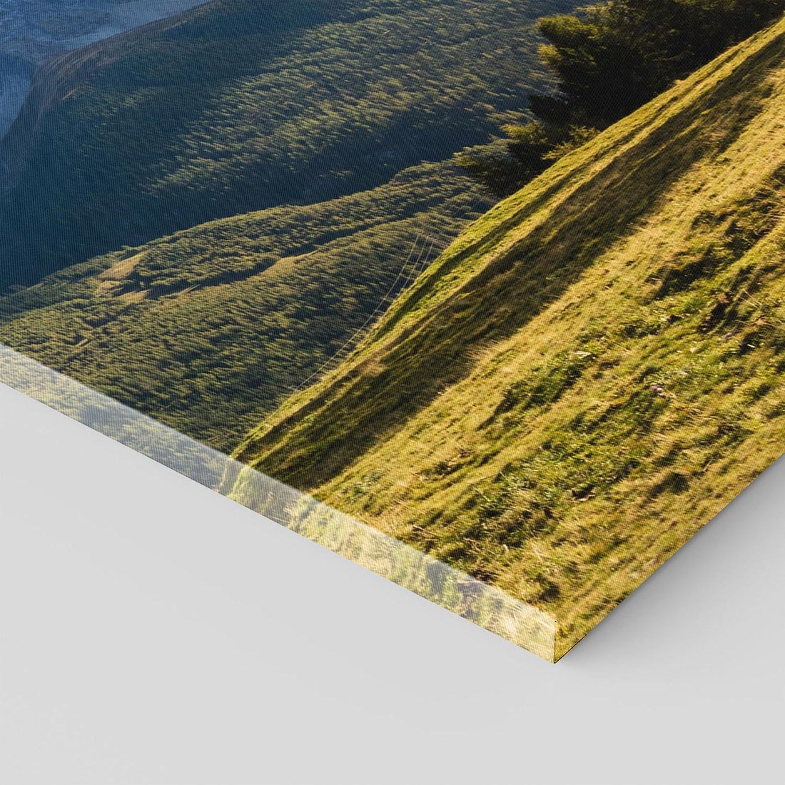 Przywołaj esencję górskiego piękna dzięki temu uroczemu obrazowi przedstawiającemu łąkę i majestatyczne szczyty. Zielona trawa, kwitnące kwiaty i majestatyczne góry tworzą niepowtarzalą aurę. Ta kompozycja dodaje harmonii i spokoju, idealna dla miłośników natury i pragnących wprowadzić górskie inspiracje do swojego wnętrza.