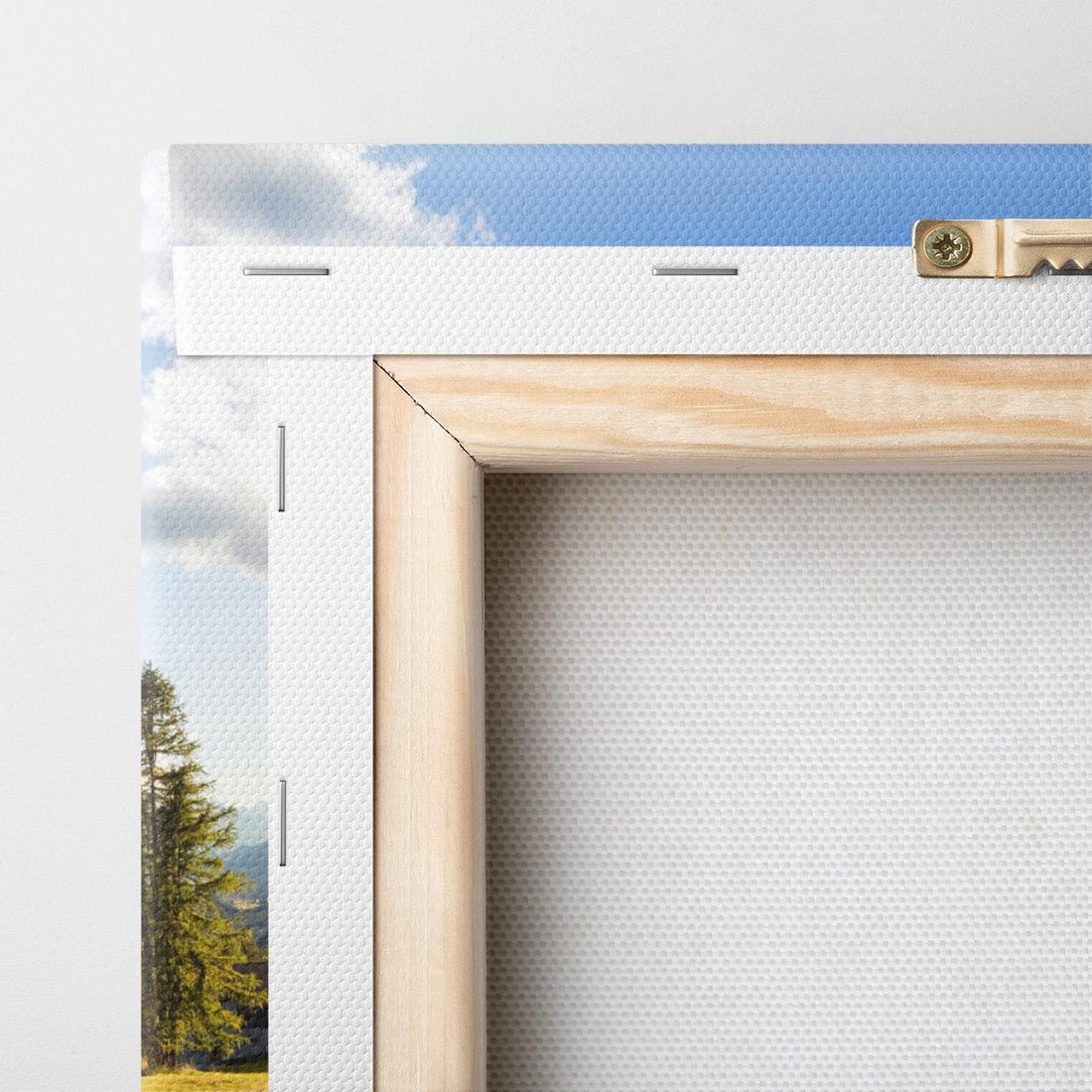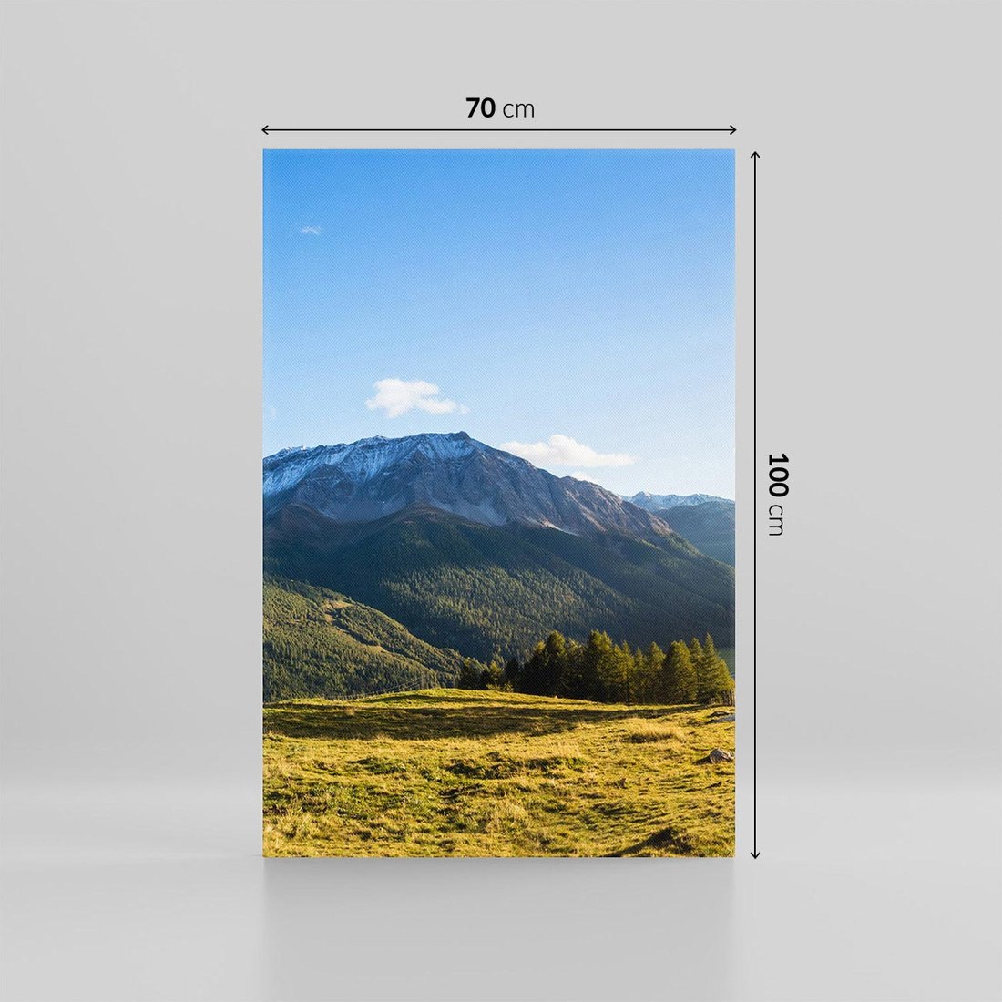 • Obraz na płótnie 70x100 - Górski pejzaż: łąka i szczyty