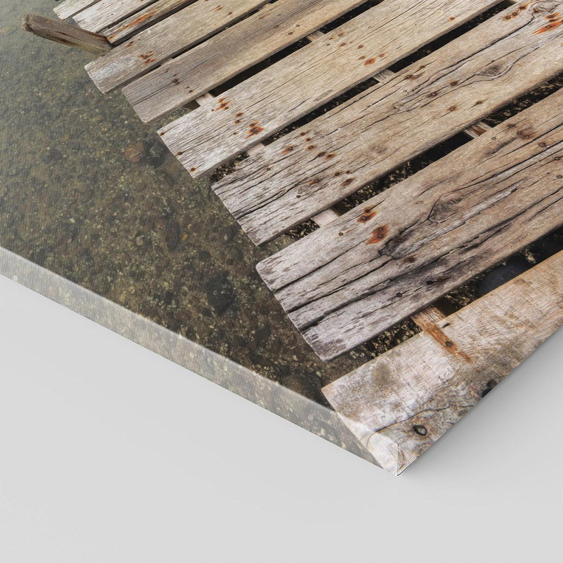 Ożyw swoje wnętrze tym malowniczym obrazem przedstawiającym pomost, jezioro i łódkę. Spokojna woda, odbicia i przyjemna atmosfera tworzą aurę wyciszenia i kontemplacji. Ta kompozycja dodaje relaksu i odprężenia, idealna dla miłośników natury i chwil spokoju nad wodą.