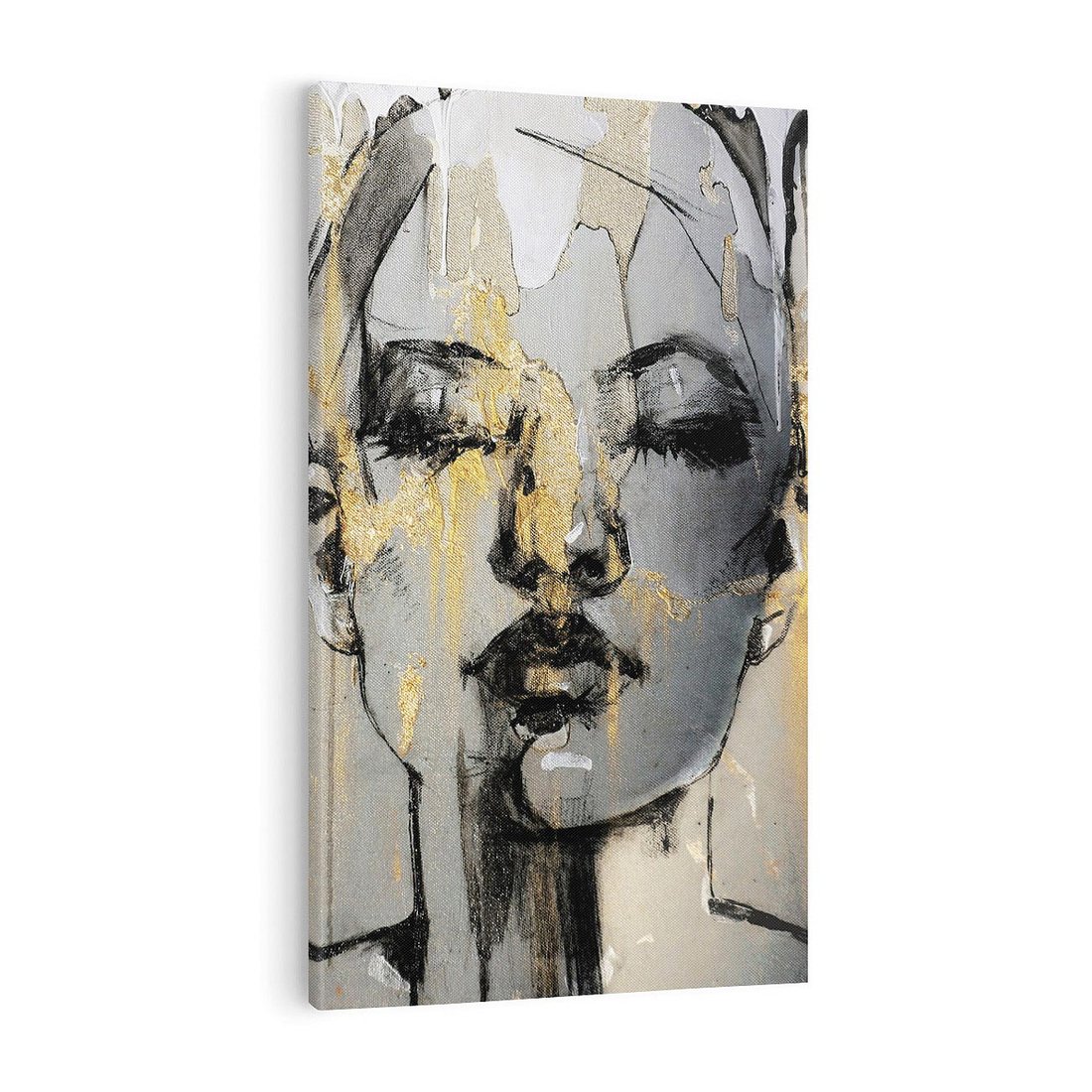 Obraz na płótnie 70x100 - Kobieta - Abstrakcyjne Malowidło - złote, usta abstrakcja