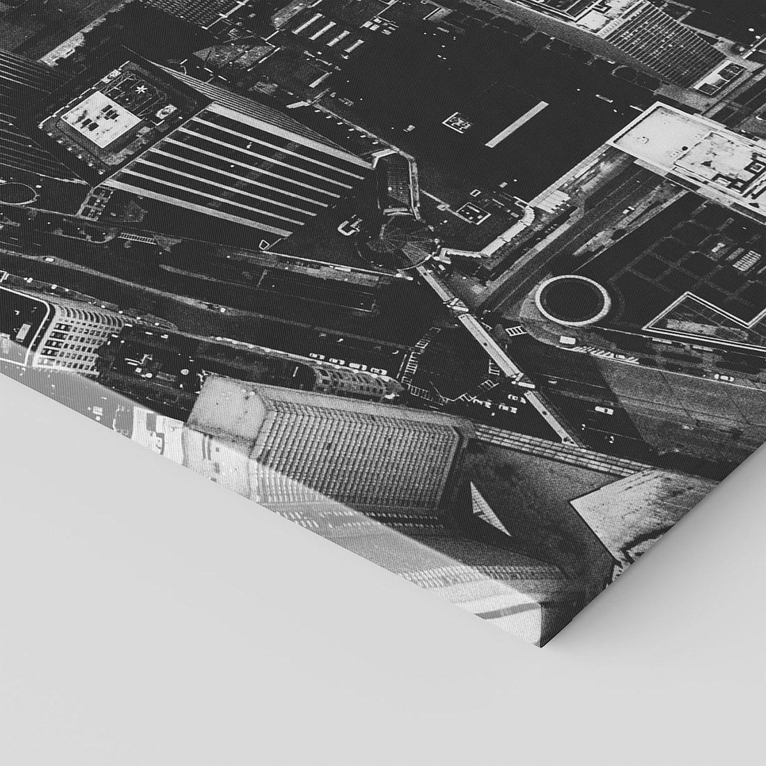Ten biało-czarny obraz przedstawia miejskie pejzaże w kontrastujących odcieniach. Kompozycja emanuje nowoczesnością i wyrazistością, dodając wnętrzu wyjątkowego charakteru. Doskonały wybór dla miłośników minimalistycznego designu z nutą miejskiego klimatu.