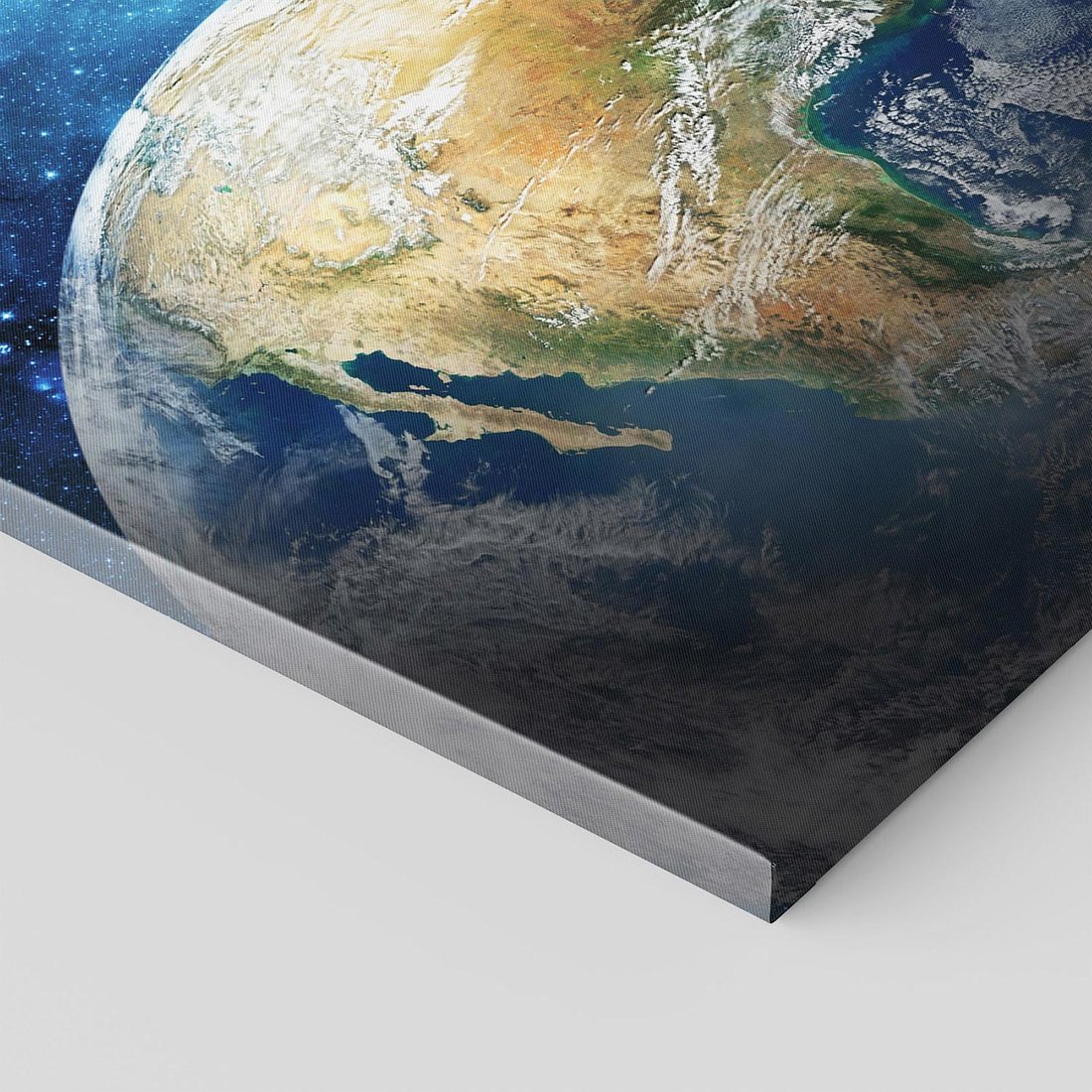 Odkryj fascynujące widoki Ziemi z kosmosu na tym hipnotyzującym obrazie. Jego kontrastujące kolory i tajemniczy wygląd tworzą aurę nieodkrytych tajemnic i nieskończoności wszechświata. Ta kompozycja dodaje wyobraźni i perspektywy, idealna dla miłośników kosmosu i wędrówek przez galaktyki.