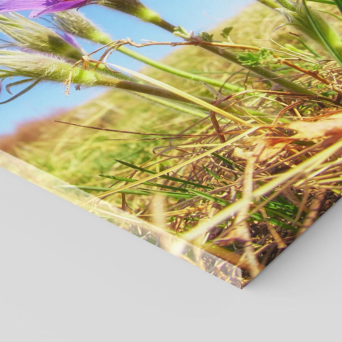 Przeniknij do bujnego krajobrazu pełnego kwiatów dzięki temu zachwycającemu obrazowi na płótnie. Kolorowe kwiaty na tle malowniczej łąki wzbudzają uczucie radości i łączą z naturą. Doskonały wybór dla miłośników piękna przyrody.