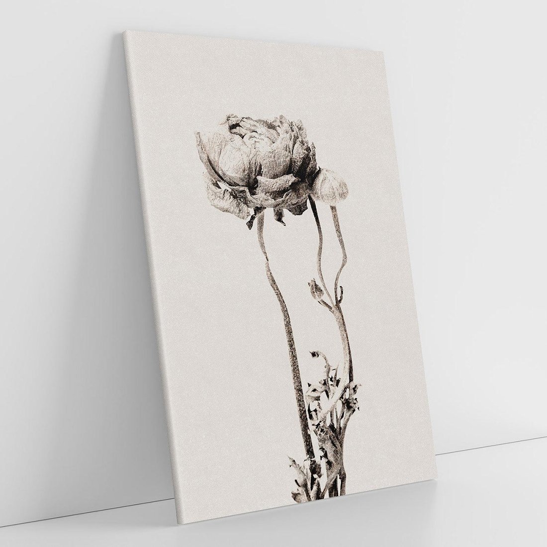 Odkryj minimalistyczne piękno tego czarno-białego obrazu na płótnie, który prezentuje kwiatową symfonię w odcieniach szarości. Beżowe tło podkreśla delikatność i elegancję tego nowoczesnego dzieła sztuki.