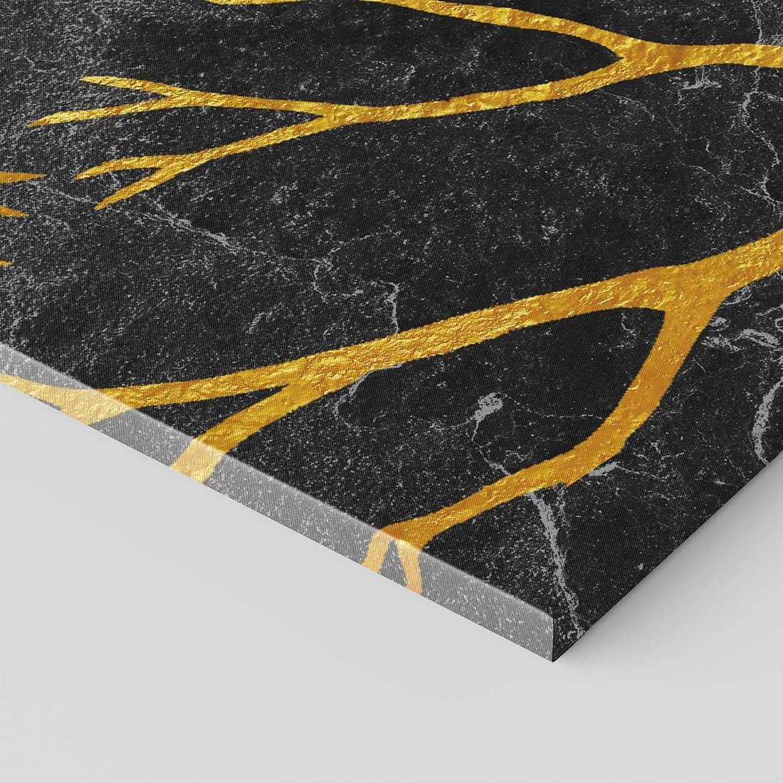 Ten metaforyczny obraz przedstawia złote gałęzie drzew na czarnym marmurowym tle, emanujący elegancją i tajemniczym urokiem. Minimalistyczny design podkreśla wyrafinowany charakter kompozycji. To dzieło sztuki przenosi widza w niezwykłą przestrzeń, gdzie złoto symbolizuje światło i nadzieję w ciemnościach. Idealny dodatek do wnętrz, które pragną zachować wyjątkowy i niezwykły wystrój.