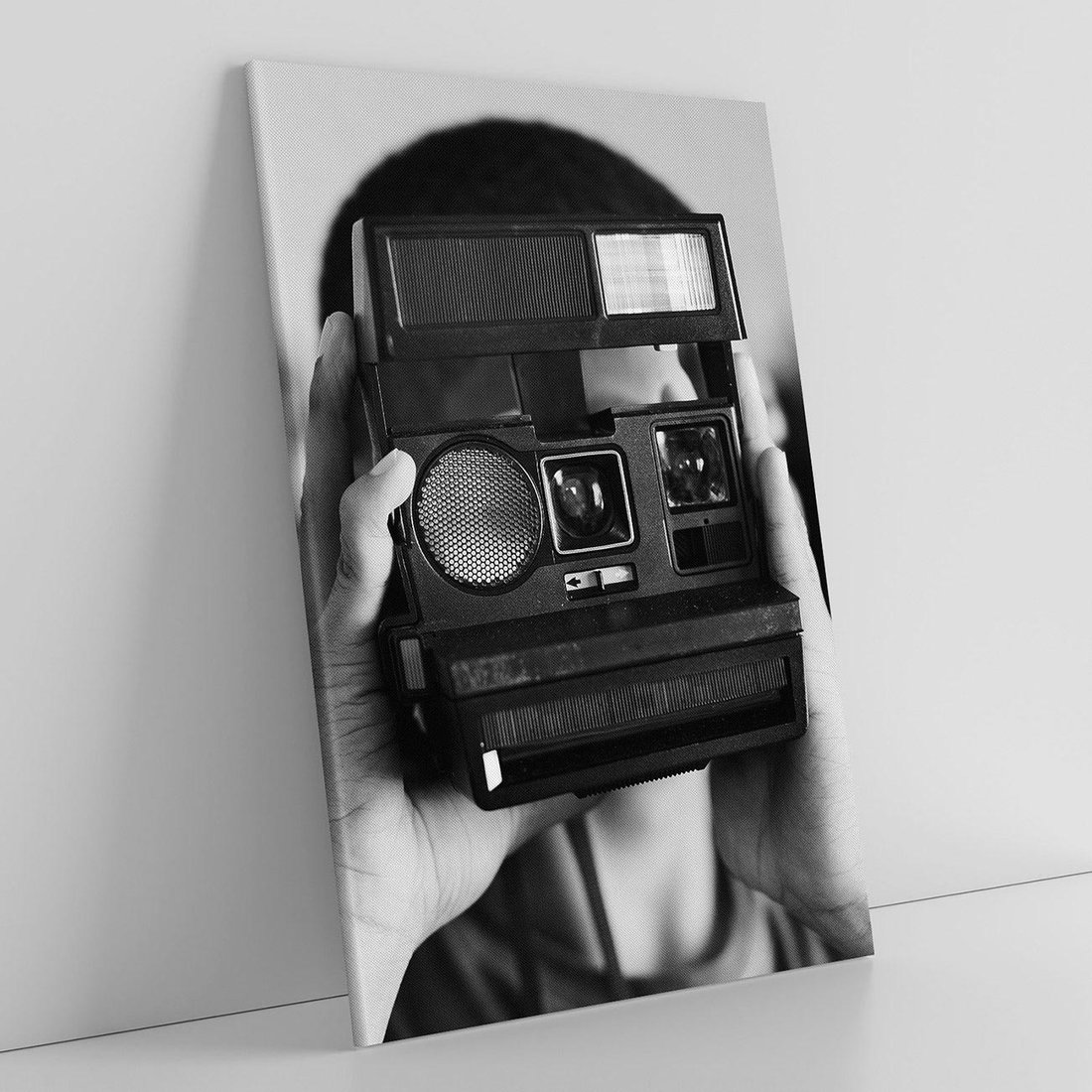 Czarno-biały portret przedstawia mężczyznę, który robi zdjęcie, używając polaroidu. Fotografia emanuje artystycznym wdziękiem, a klimat retro dodaje jej wyjątkowego charakteru. Ten obraz przenosi nas w świat sztuki i fotografii, wzbudzając zainteresowanie i ciekawość. Idealny dodatek do wnętrz, które pragną zachować artystyczną duszę.