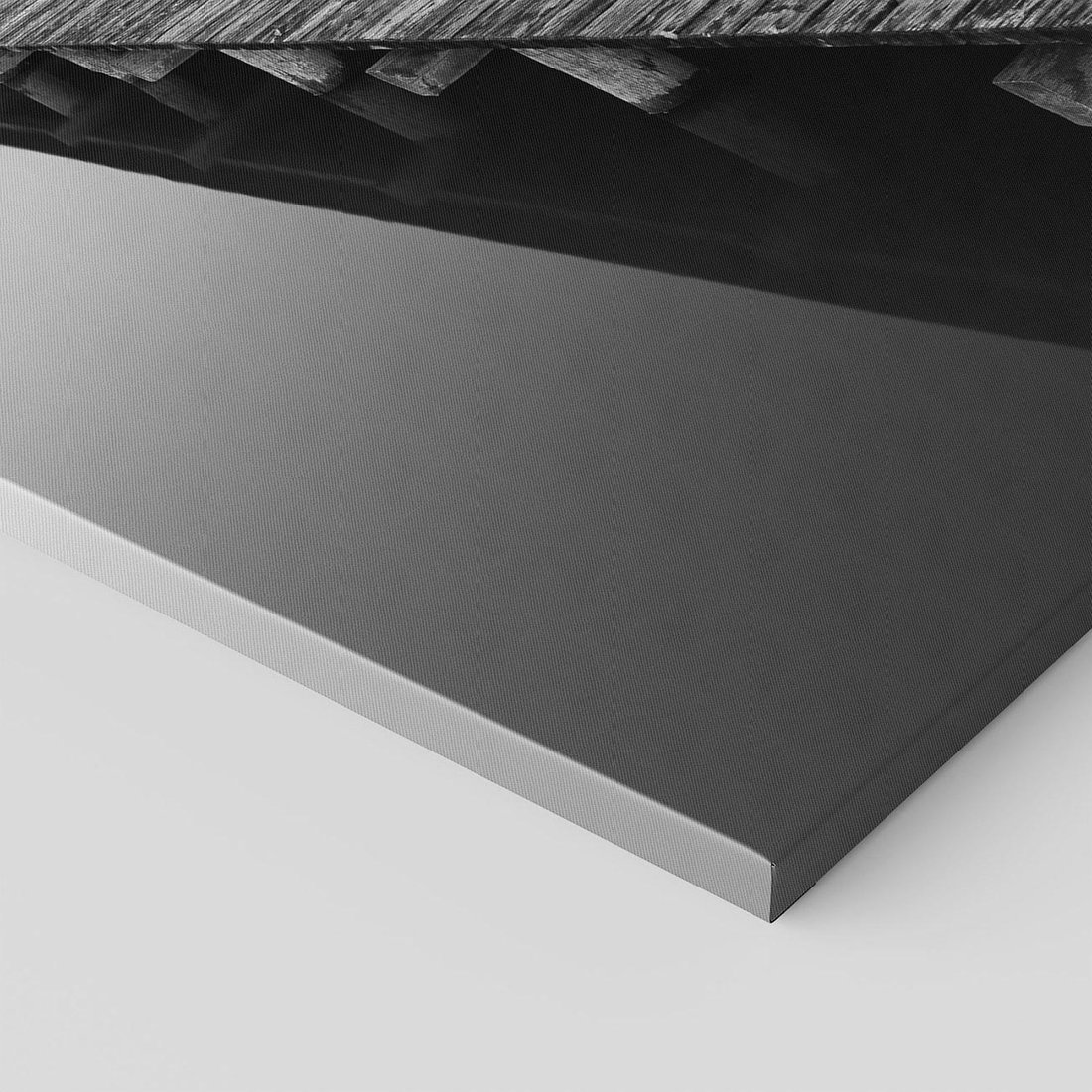 Obraz na płótnie 70x100 - Mglista Perspektywa - czarno biała fotografia, drewniany pomost na jeziorze
