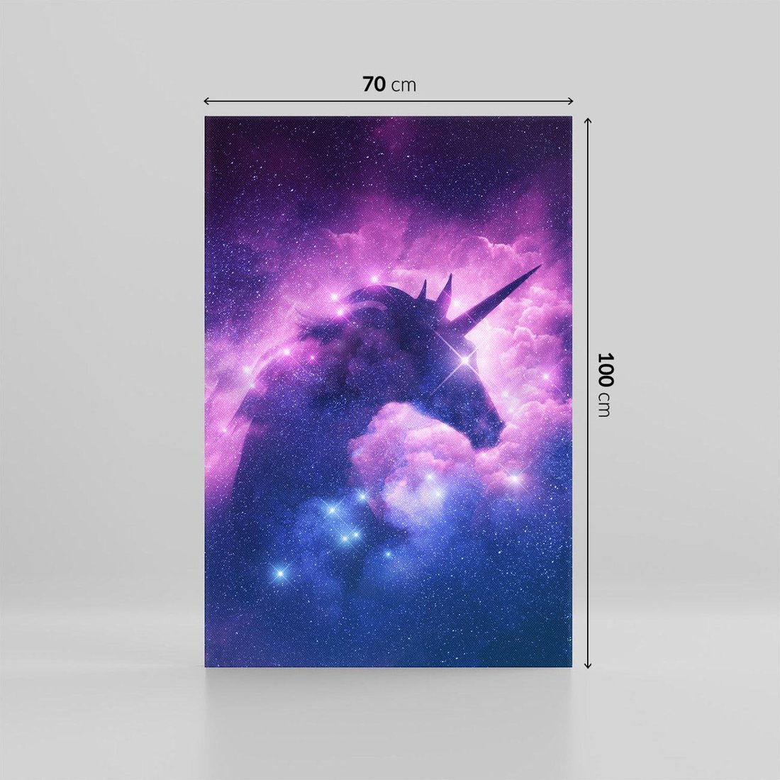 Przenieś się w nieodkryte rejony kosmosu w towarzystwie jednorożca na obrazie. Odczuj magię i tajemniczość tego stworzenia, przenikając w świat fantazji i wyobraźni.