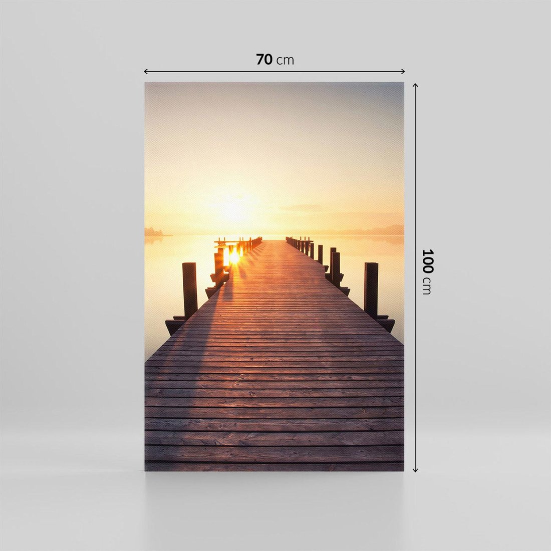 Przenieś się nad malownicze morze dzięki temu urokliwemu obrazowi na płótnie. Molo wprowadza głębię i perspektywę, a błękitna woda dodaje spokoju i wyciszenia. Odczuj harmonię natury i świeżość morskiego powietrza w swoim wnętrzu.