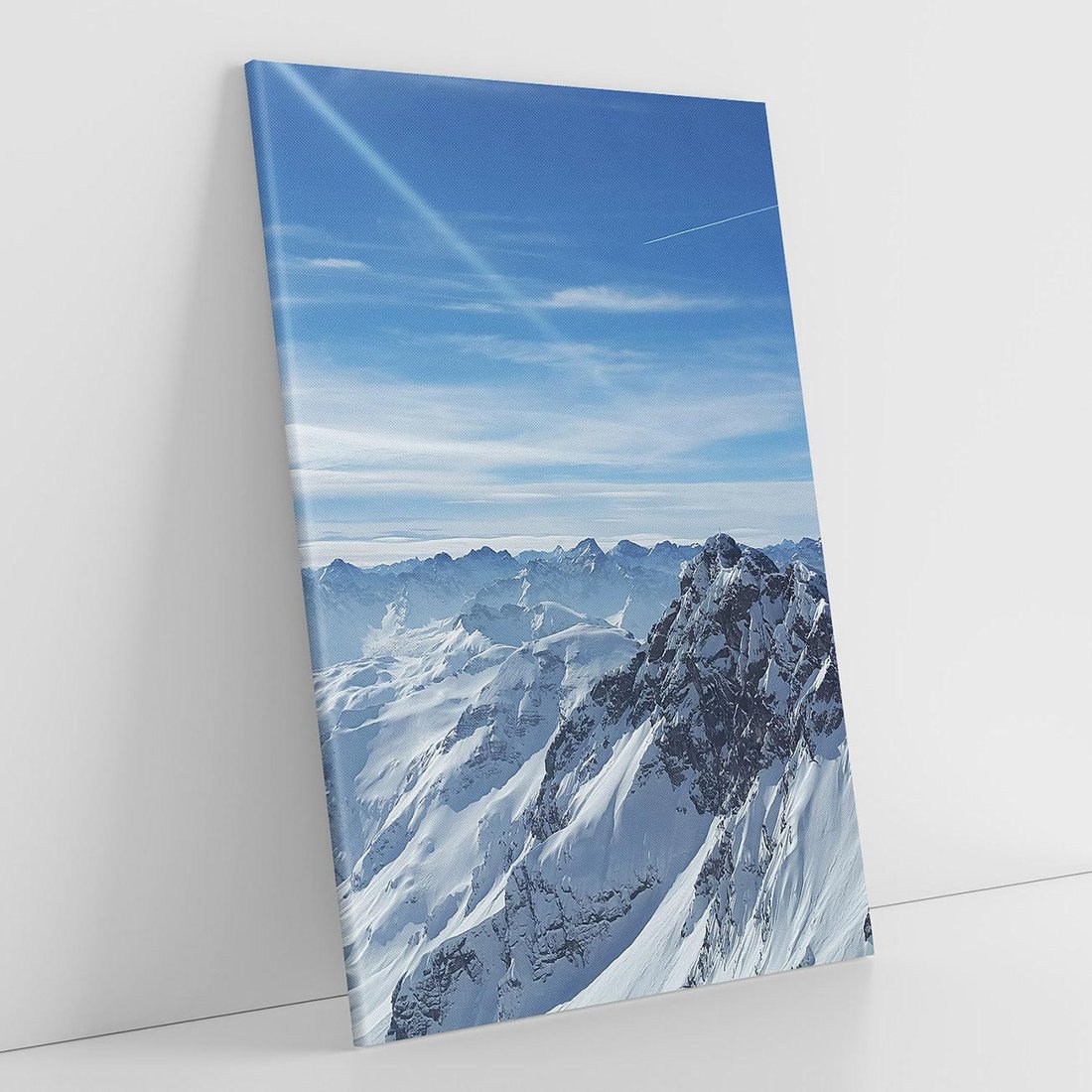 Odkryj magiczny świat zimowych gór w pełnym rozkwicie dzięki temu uroczemu obrazowi. Srebrzyste szczyty, błękitne niebo i pokryta śniegiem roślinność tworzą niezwykły widok. Ta kompozycja dodaje uczucia chłodzenia i siły natury, idealna