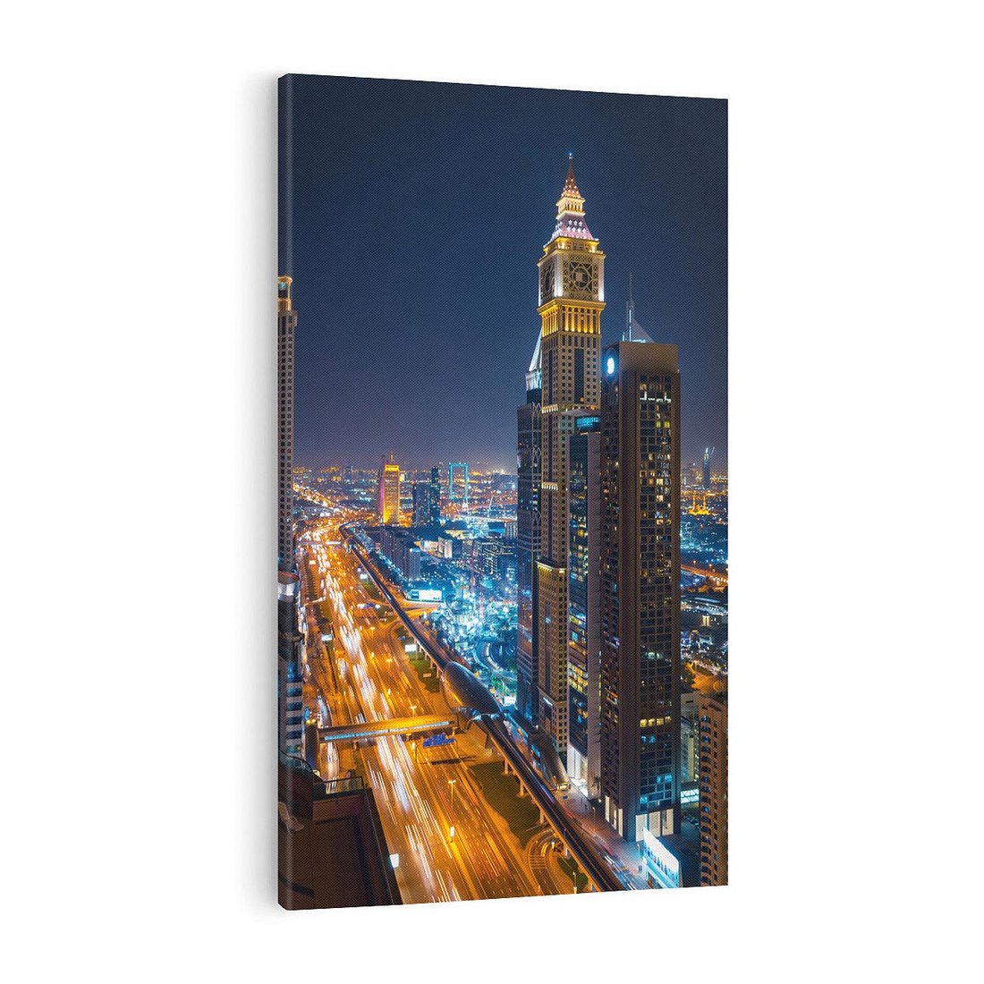 Przenieś się w magiczną atmosferę miasta nocą za pomocą tego obrazu. Odczuj pulsujący rytm nocnego życia, zachwyć się migotaniem świateł i wprowadź tajemniczość do swojego wnętrza.