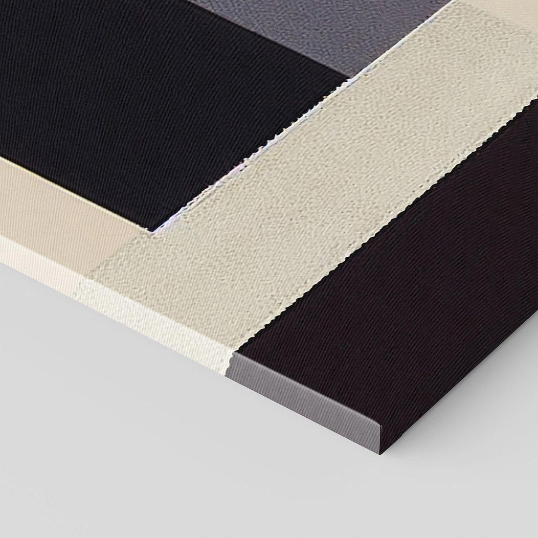 To nowoczesny obraz, w którym dominują geometryczne pasy w odcieniach beżu, brązu i camel. Jego minimalistyczny design i wyrafinowany styl doskonale wpasują się w nowoczesne wnętrza. Geometryczne kompozycje tworzą harmonijne połączenie prostoty i elegancji, wzbogacając przestrzeń swoim subtelnie ziemistym wyglądem.
