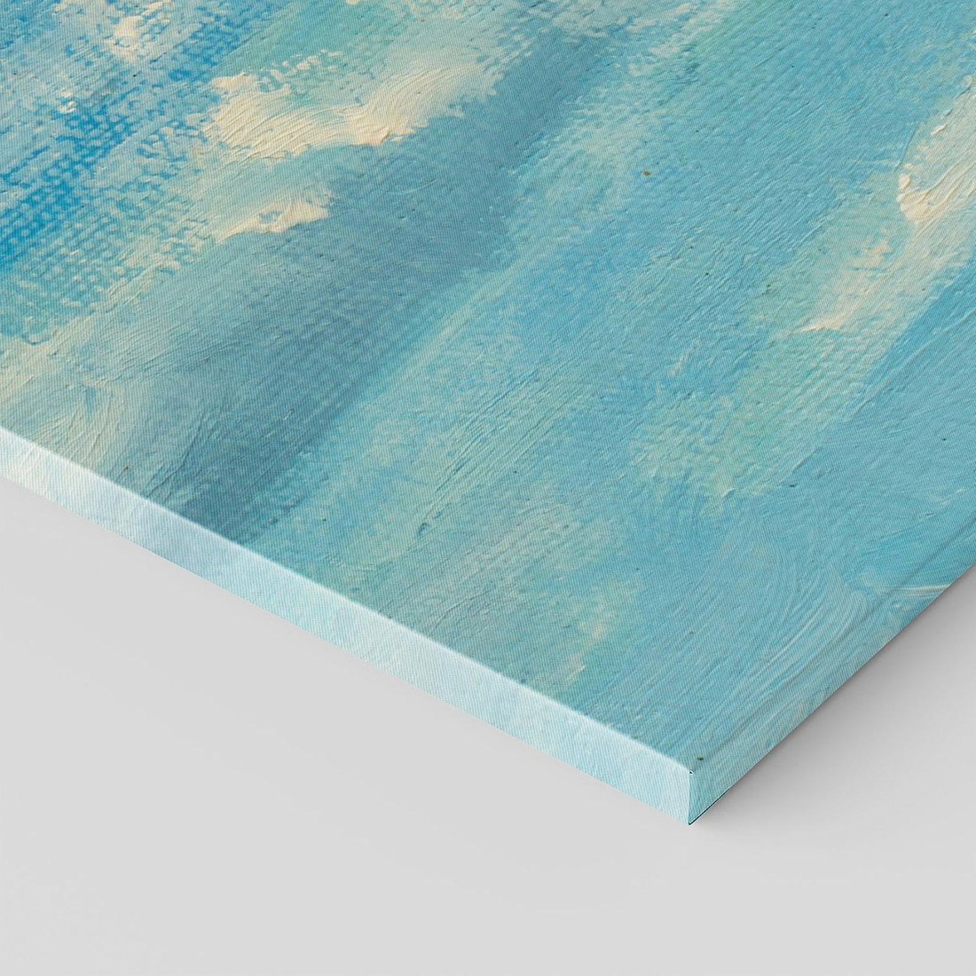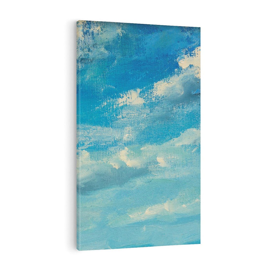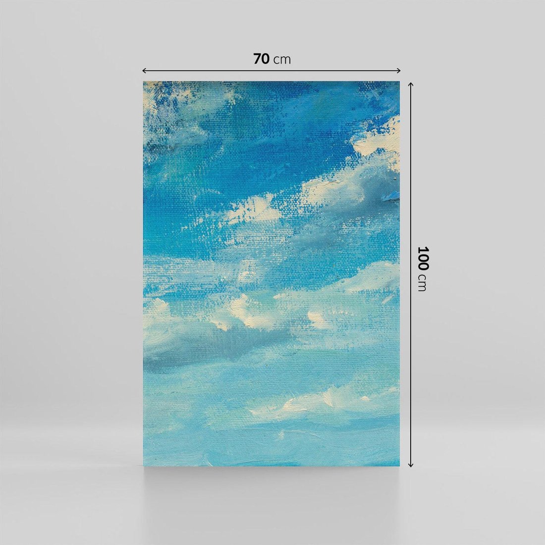 Obraz na płótnie 70x100 - Oddechy niebiańskiej materii - olejny obraz, smugi farby przypominają obłoki na błękitnym niebie