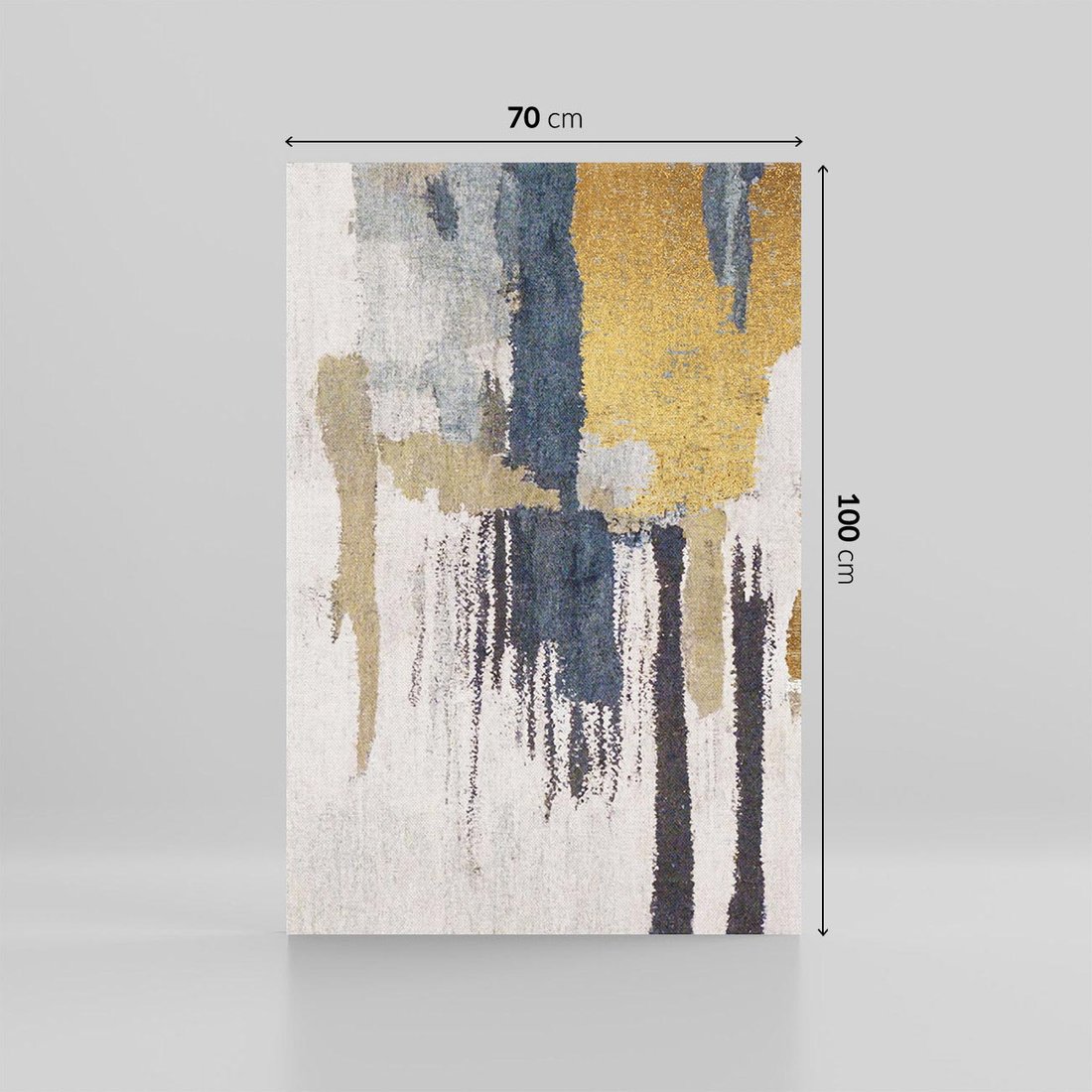 Ten abstrakcyjny obraz przedstawia porysowaną ścianę w kolorach beżu i szarości, z dodatkiem złotych przetarć. Jest idealny dla osób ceniących nowoczesny styl i oryginalność. Będzie się dobrze prezentował w każdym wnętrzu, zarówno w domu, jak i w biurze.