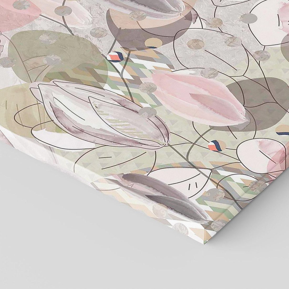 Odkryj wyjątkowy obraz, który przyciąga wzrok połączeniem różnorodnych tekstur i subtelnych roślinnych motywów. Stonowane jasne kolory w odcieniach zieleni i pudrowego różu nadają mu delikatny i harmonijny charakter. To dzieło sztuki stworzone dla miłośników natury i minimalistycznej estetyki, pragnących wprowadzić spokój i harmonię do swoich wnętrz. Doskonały akcent dla tych, którzy cenią wyrafinowany styl i delikatność.