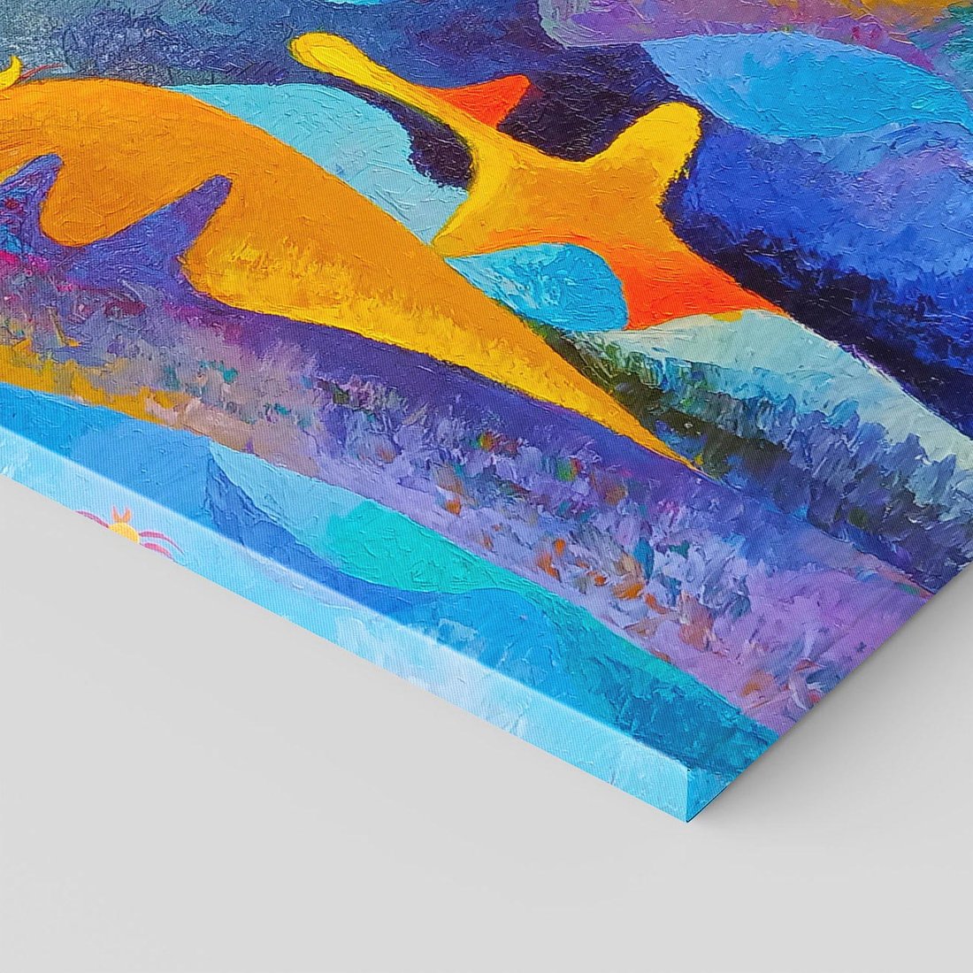 Ta energetyczna abstrakcja ukazuje dziwne formy, które tańczą wśród intensywnych ognistych kolorów. "Płomienne Tańce Abstrakcji" to eksplozja energii i wyobraźni, gdzie formy i kolory łączą się w dynamiczną harmonię, tworząc abstrakcyjną opowieść o ruchu, pasji i niezwykłości.