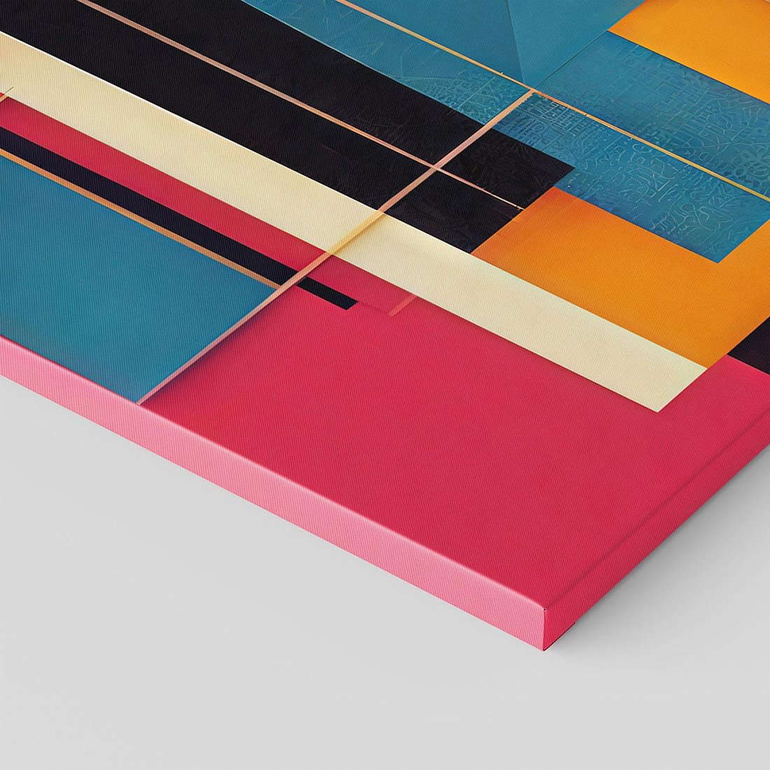 Ta ekscytująca kolorowa abstrakcja zaprasza widza do fascynującej podróży w świat form i linii. Przy użyciu mocnych barw, takich jak czerwień, pomarańcz i błękit, artysta stworzył dynamiczną instalację, składającą się z prostokątnych kształtów i linii. Obraz emanuje energią i radością, pobudzając zmysły i wyobraźnię. To wyjątkowe dzieło sztuki z pewnością przyciągnie uwagę każdego, kto ceni odważne i nowatorskie eksploracje w sztuce abstrakcyjnej.