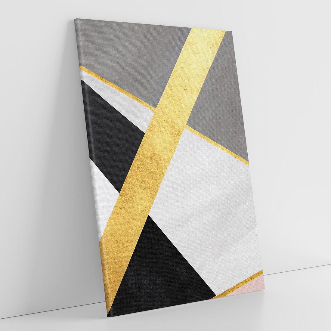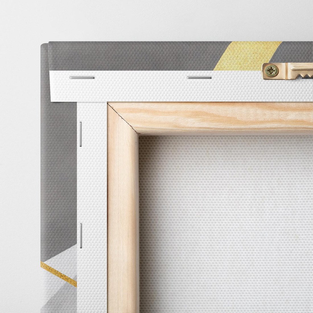 Obraz prezentuje złote abstrakcyjne linie w delikatnych odcieniach szarości i pudrowego różu. Nowoczesny styl podkreśla wyrafinowany charakter kompozycji, emanującej duchem glamour. Doskonały wybór dla wnętrz, które pragną zachować artystyczny i luksusowy wystrój.