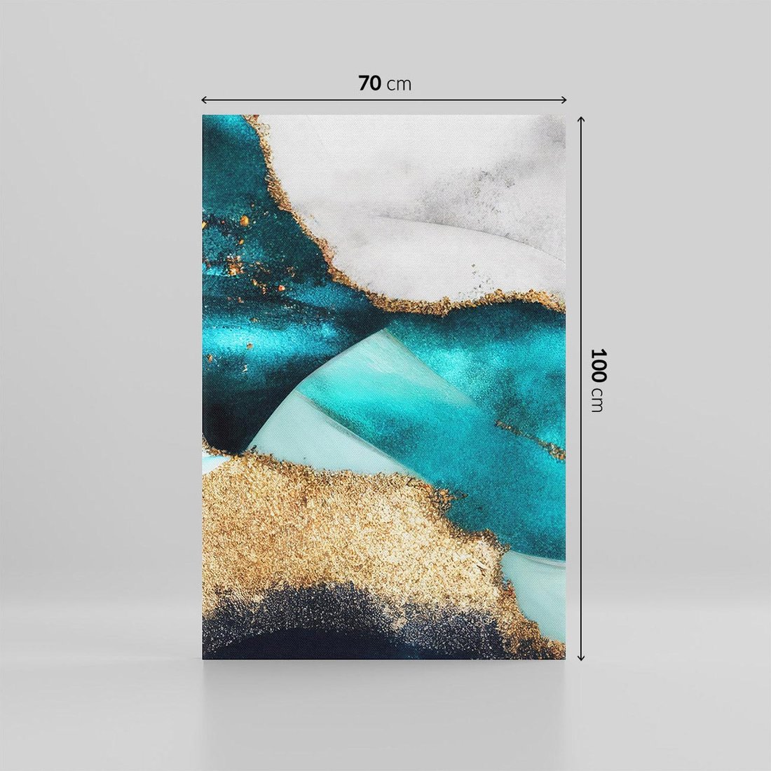 Obraz na płótnie 70x100 - Rozlane Turkusy - Turkusowe plamy, złote elementy