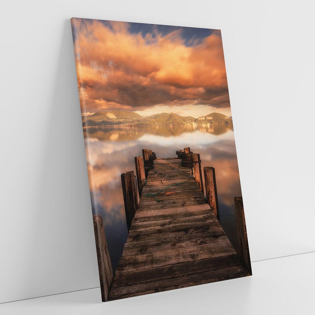 Przenieś się nad spokojne jezioro dzięki temu uroczemu obrazowi. Drewniane molo, odbicie w wodzie i malownicze krajobrazy tworzą nastrojową atmosferę. Ten obraz dodaje spokoju i relaksu, idealny dla osób pragnących cieszyć się pięknem natury i chwilą oderwania od codzienności.