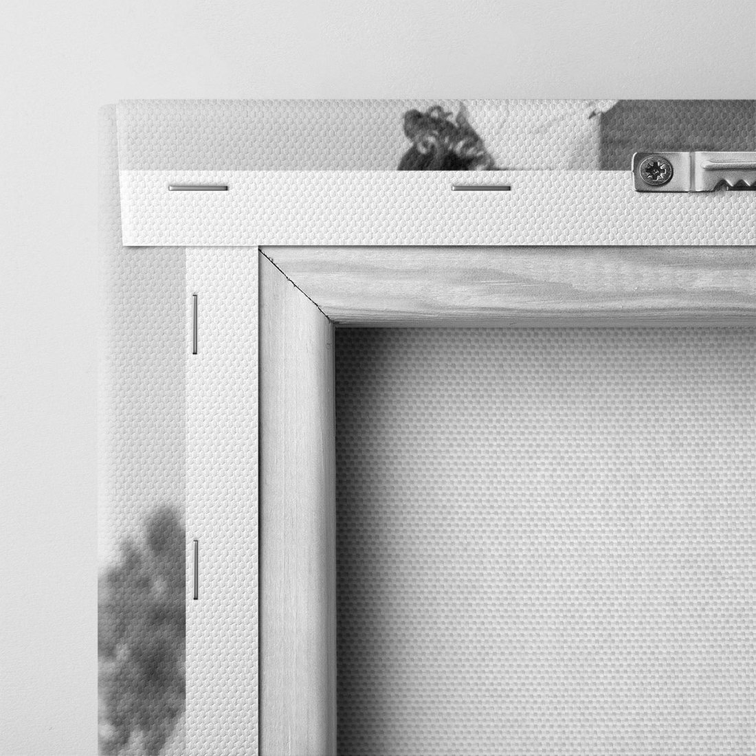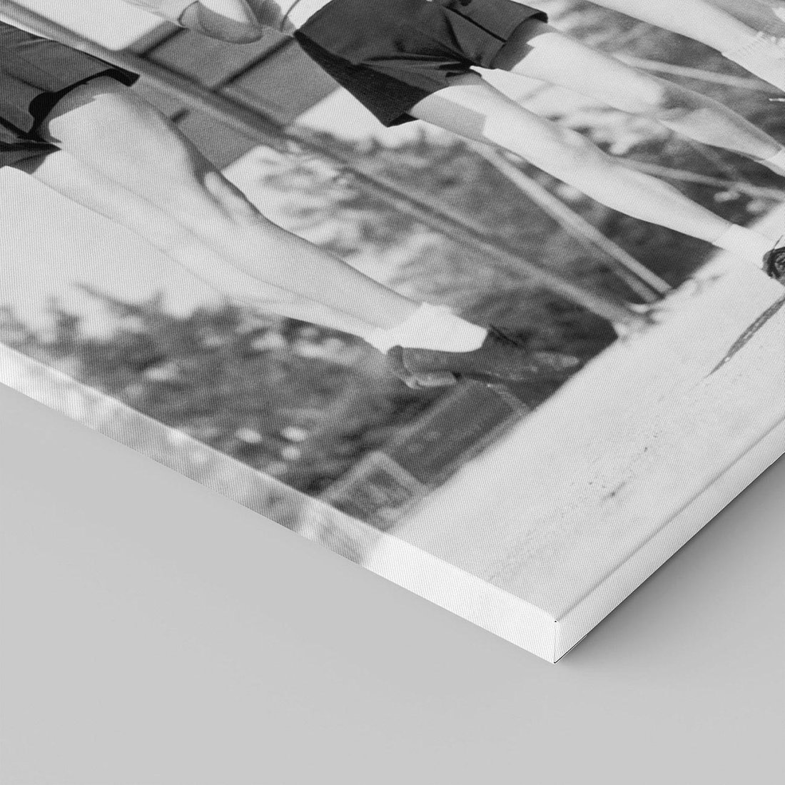 To urokliwe retro zdjęcie w czerni i bieli przenosi nas w czasie do epoki stylu pin-up. Na fotografii widoczne są kobiety ubrane w stroje sportowe, grające w koszykówkę. To połączenie sportowej aktywności z klasycznym stylem pin-up tworzy niezwykły kontrast i unikalną atmosferę. Ten obraz doskonale wprowadzi ducha retro i energię sportu do wnętrza, będąc nie tylko ozdobą, ale również źródłem inspiracji.