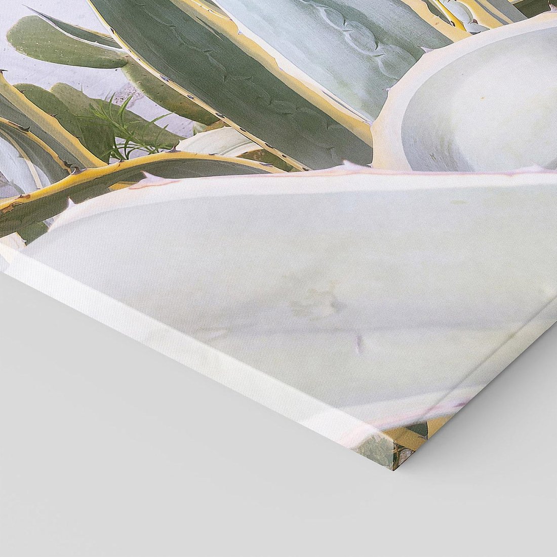 Przenikający obraz na płótnie ukazuje sukulenty i ich urokliwe liście w różnych odcieniach zieleni. Ich unikalne kształty i tekstury tworzą atrakcyjną kompozycję. Dodaj odrobinę natury i nowoczesności do swojego wnętrza tym wyjątkowym dziełem sztuki.